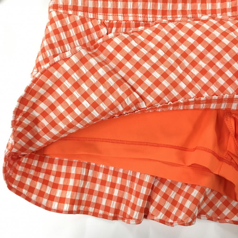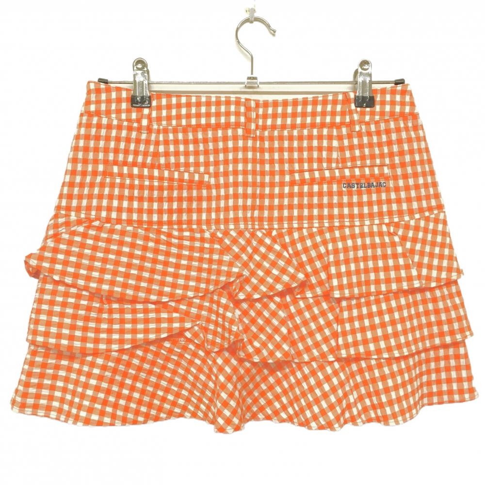 【新品】カステルバジャック スカート オレンジ×白 チェック 裾フリル 内側インナーパンツ レディース ゴルフウェア CASTELBAJAC