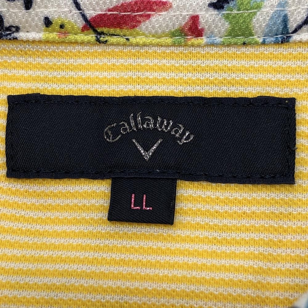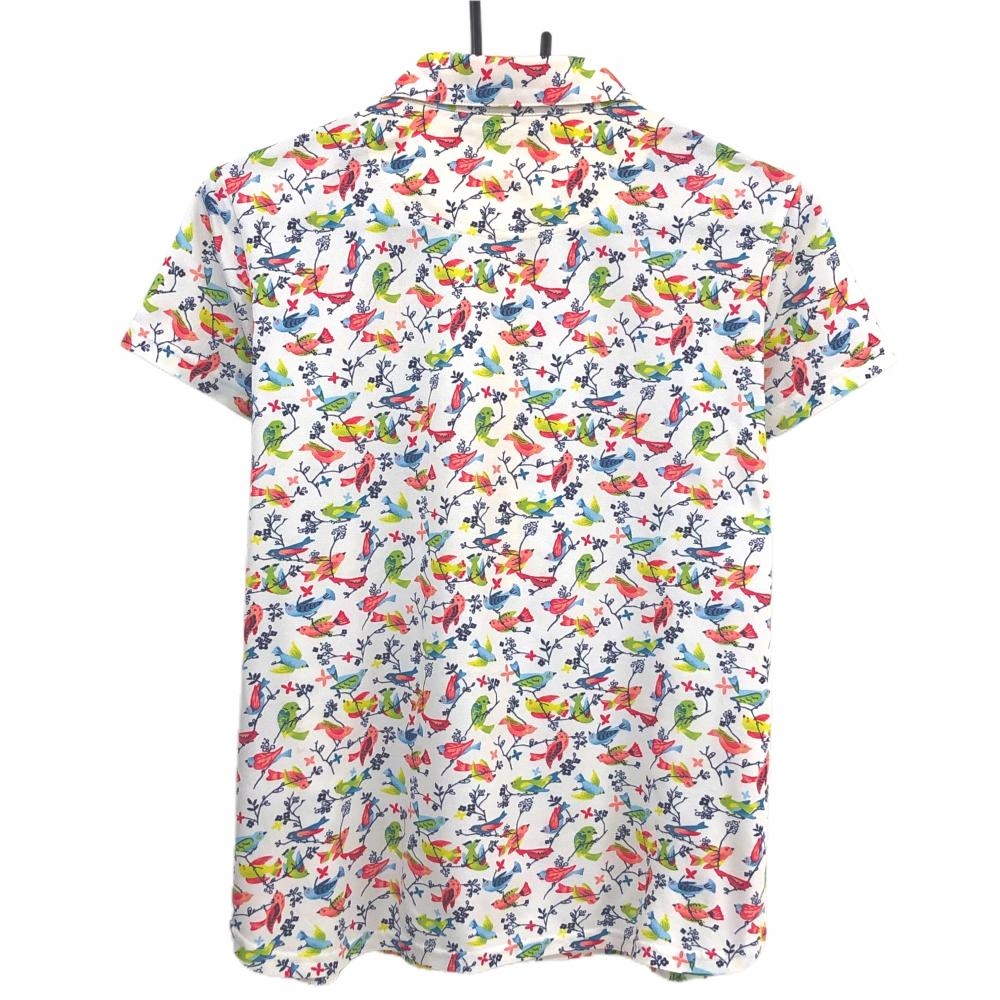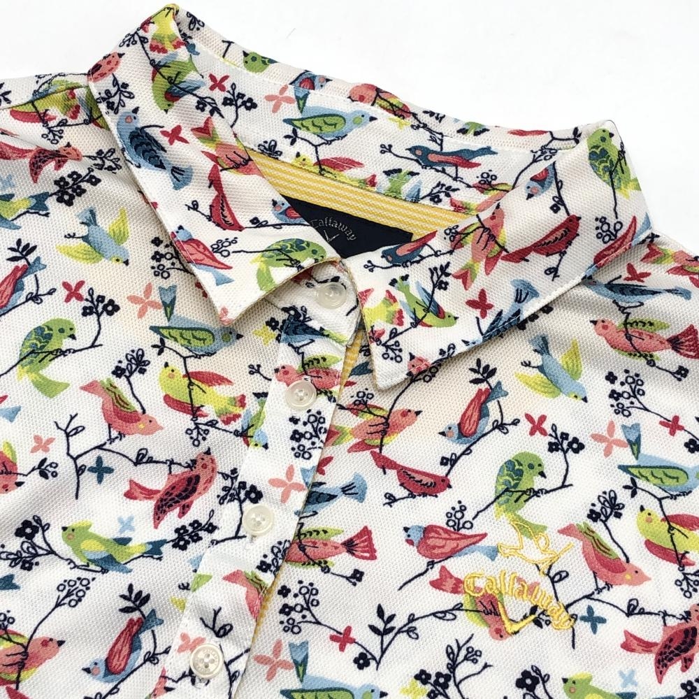 キャロウェイ 半袖ポロシャツ 白×マルチカラー 鳥柄 ロゴ刺しゅう レディース LL ゴルフウェア Callaway