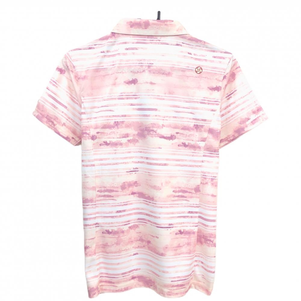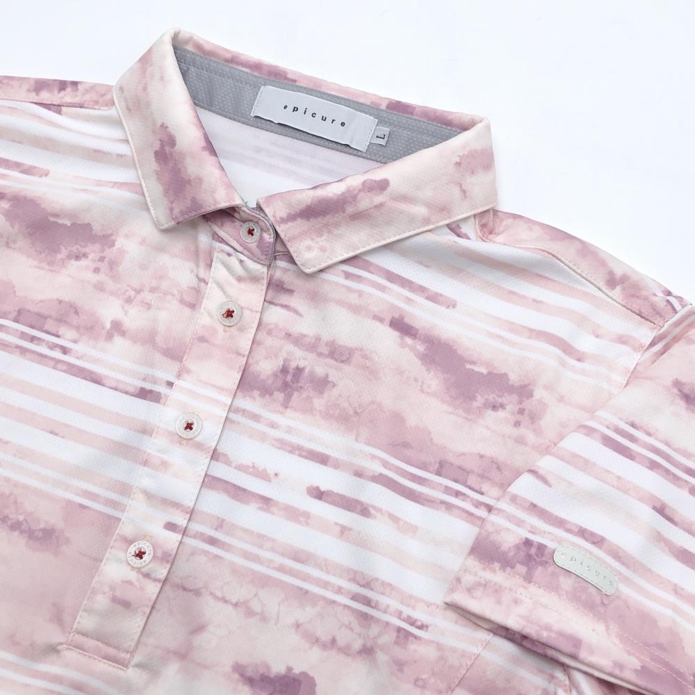 【超美品】エピキュール 半袖ポロシャツ 白×ライトピンク系 ボーダー レディース L ゴルフウェア epicure