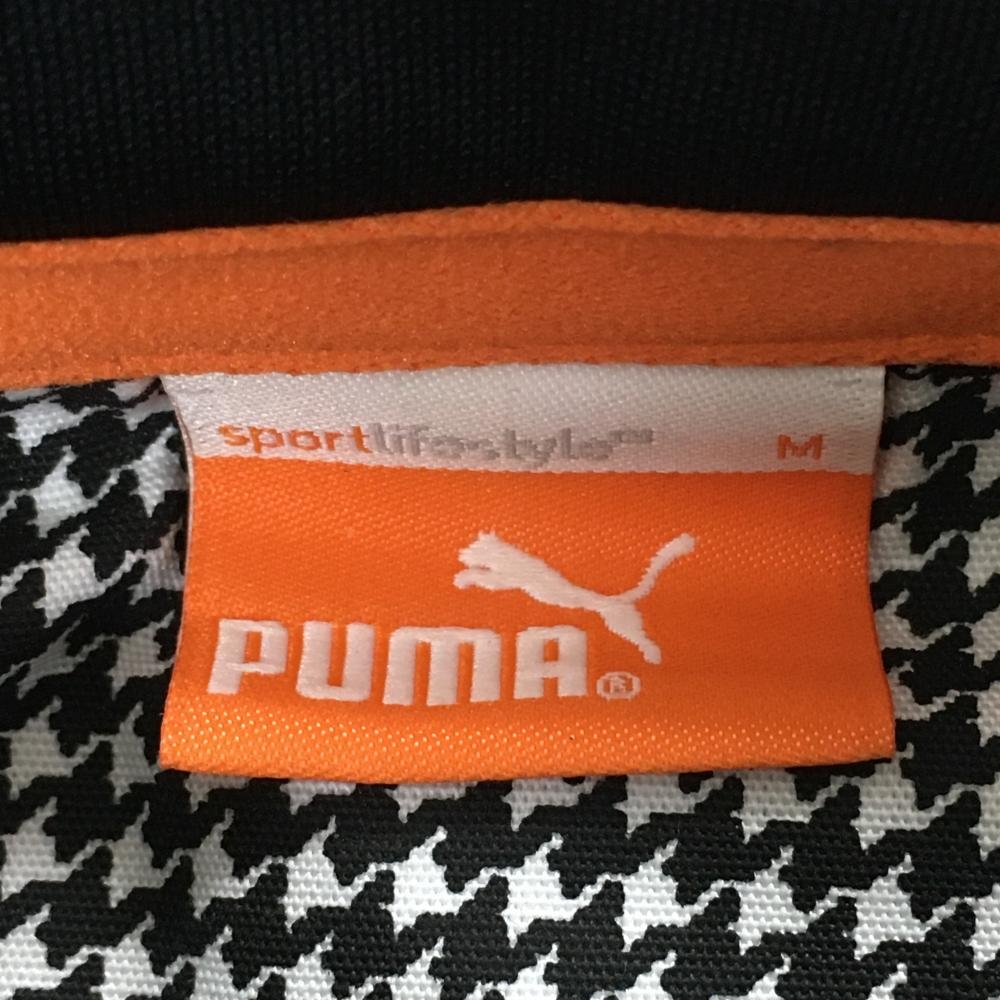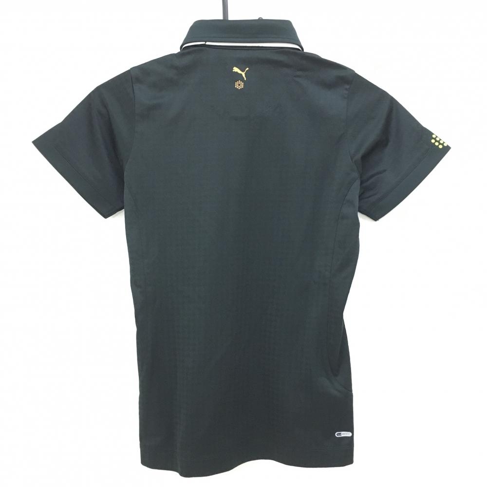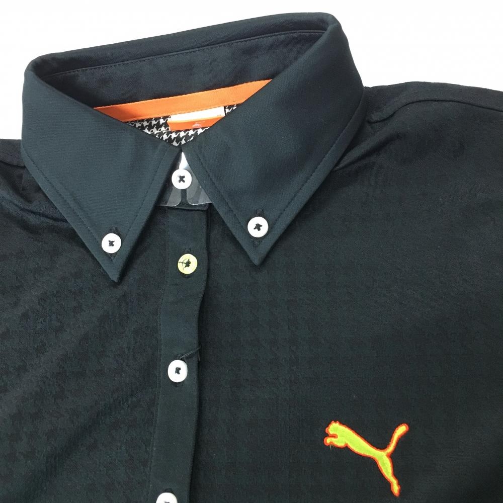 【新品】プーマ 半袖ポロシャツ 黒 千鳥格子地模様 ボタンダウン レディース M ゴルフウェア PUMA