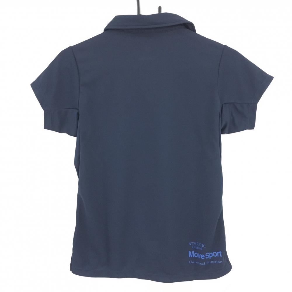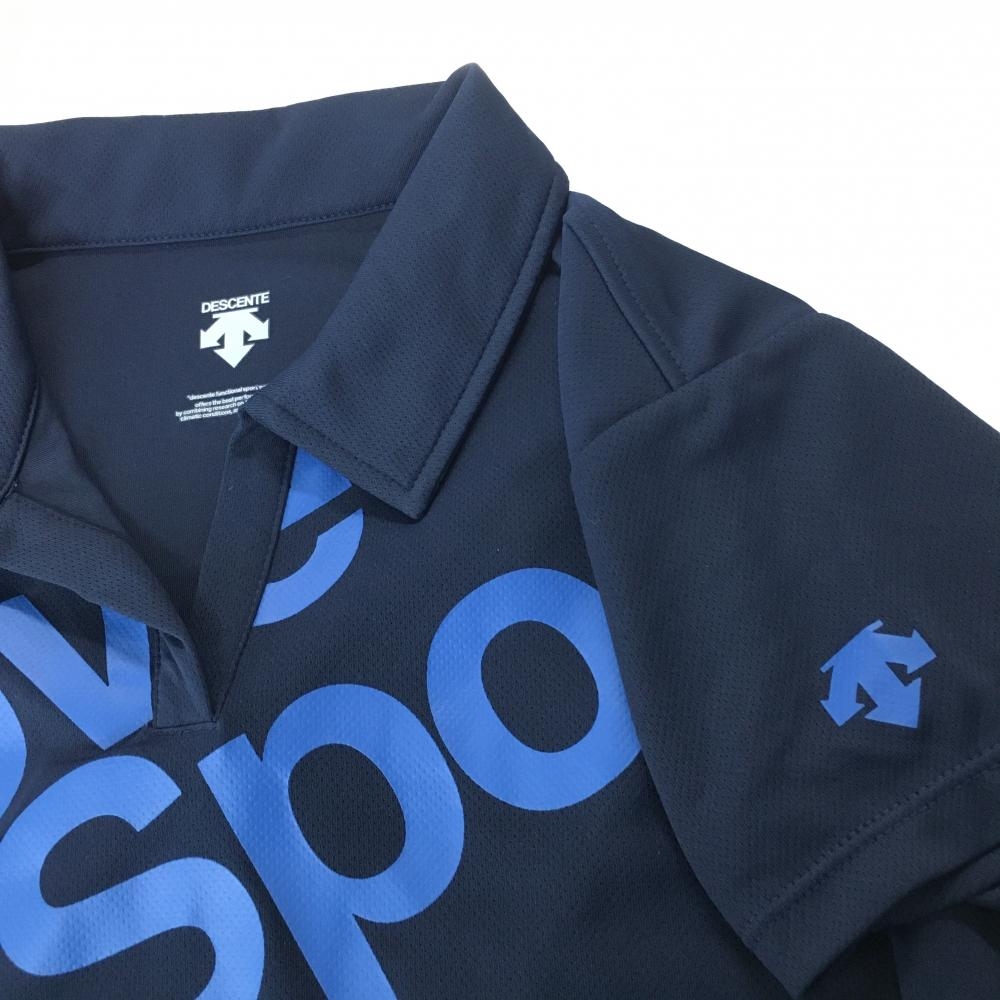 【超美品】デサント 半袖スキッパーシャツ ネイビー×ブルー ロゴ レディース M ゴルフウェア DESCENTE