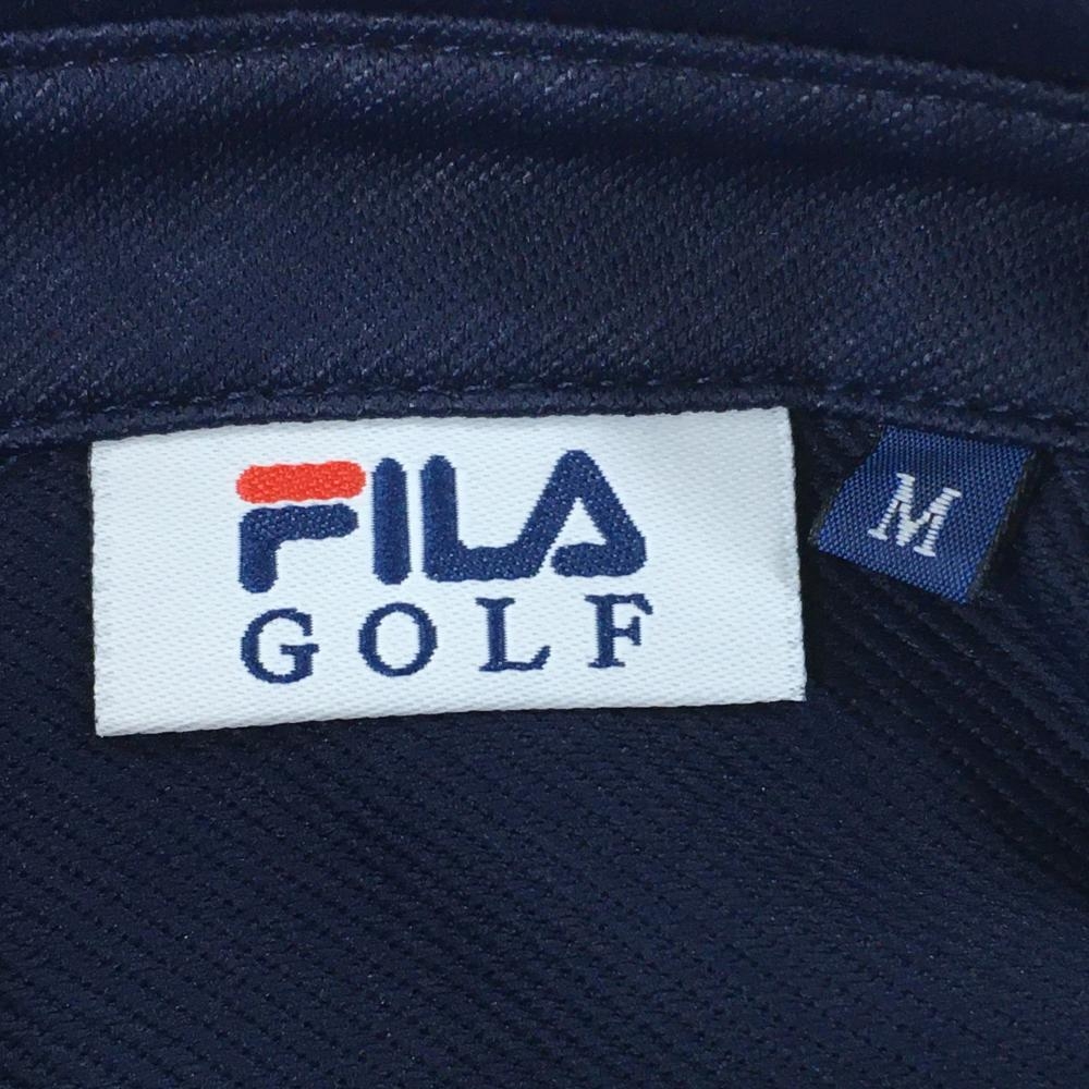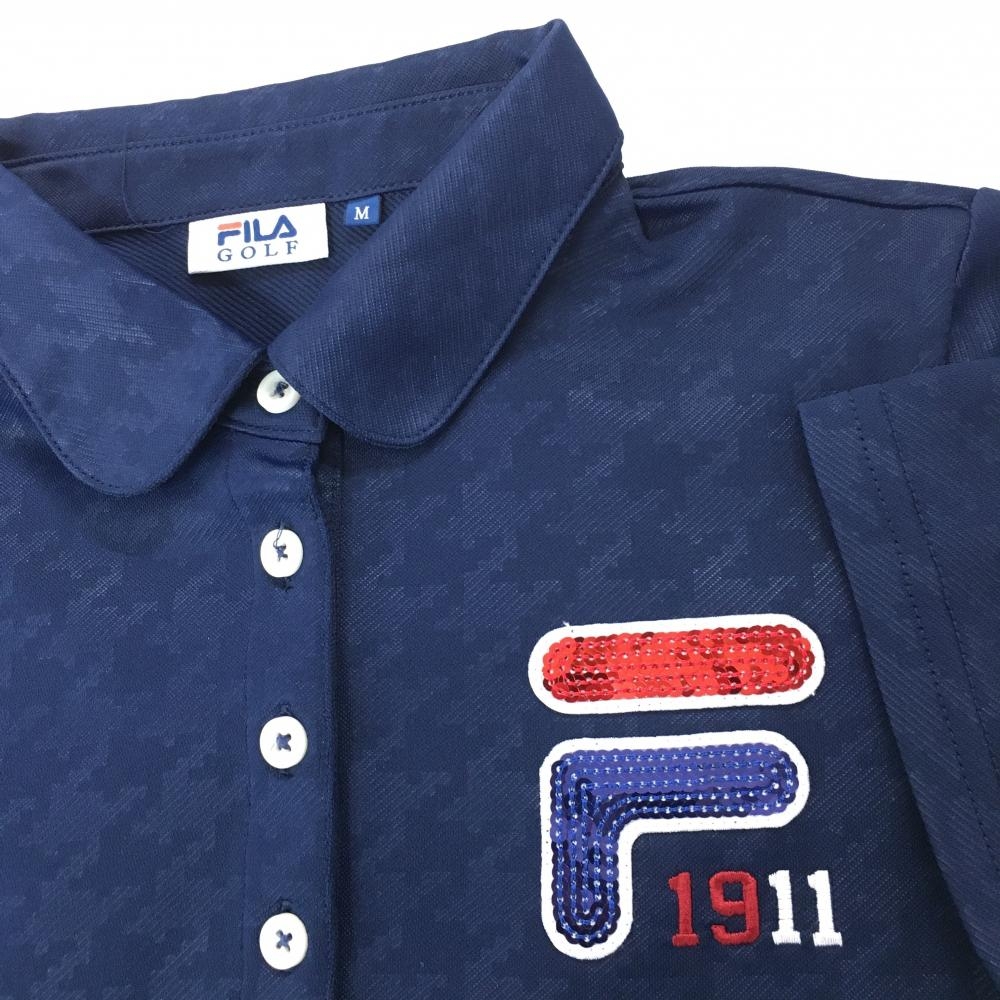 【超美品】フィラゴルフ 半袖ポロシャツ ネイビー 総柄地模様 スパンコール レディース M ゴルフウェア FILA GOLF