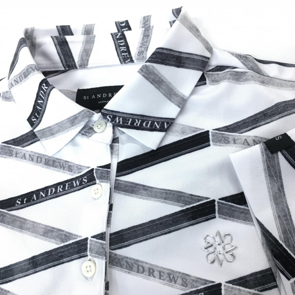 【超美品】セントアンドリュース 半袖ポロシャツ 白×グレー 総柄 ロゴ レディース S ゴルフウェア St ANDREWS
