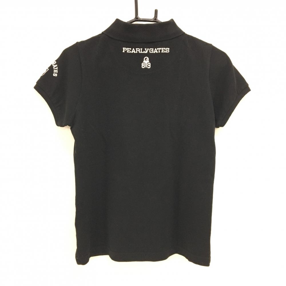 パーリーゲイツ 半袖ポロシャツ 黒×白 フェルトワッペン レディース 0(S) ゴルフウェア PEARLY GATES