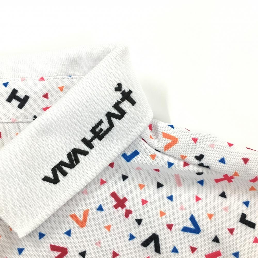 【超美品】ビバハート 半袖ポロシャツ 白×マルチカラー 総柄 襟ロゴ刺しゅう レディース 40(M) ゴルフウェア VIVA HEART
