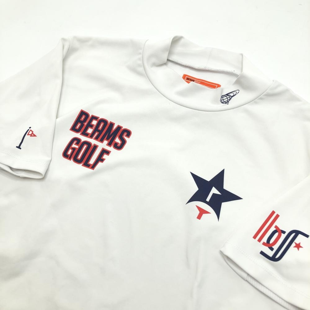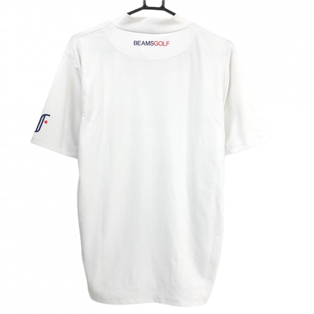 ビームスゴルフ 半袖ハイネックシャツ 白×ネイビー×レッド ロゴプリント メンズ L ゴルフウェア BEAMS GOLF