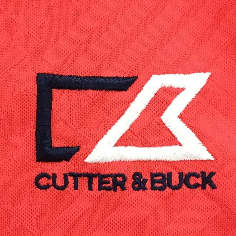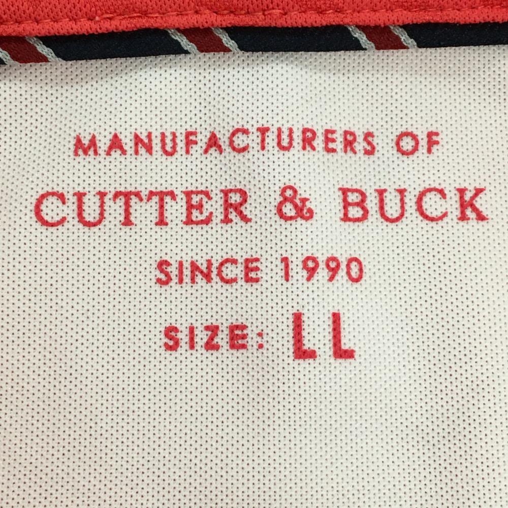 【美品】カッターアンドバック 半袖ポロシャツ レッド 星柄 斜めストライプ ボタンダウン メンズ LL ゴルフウェア CUTTER&BUCK