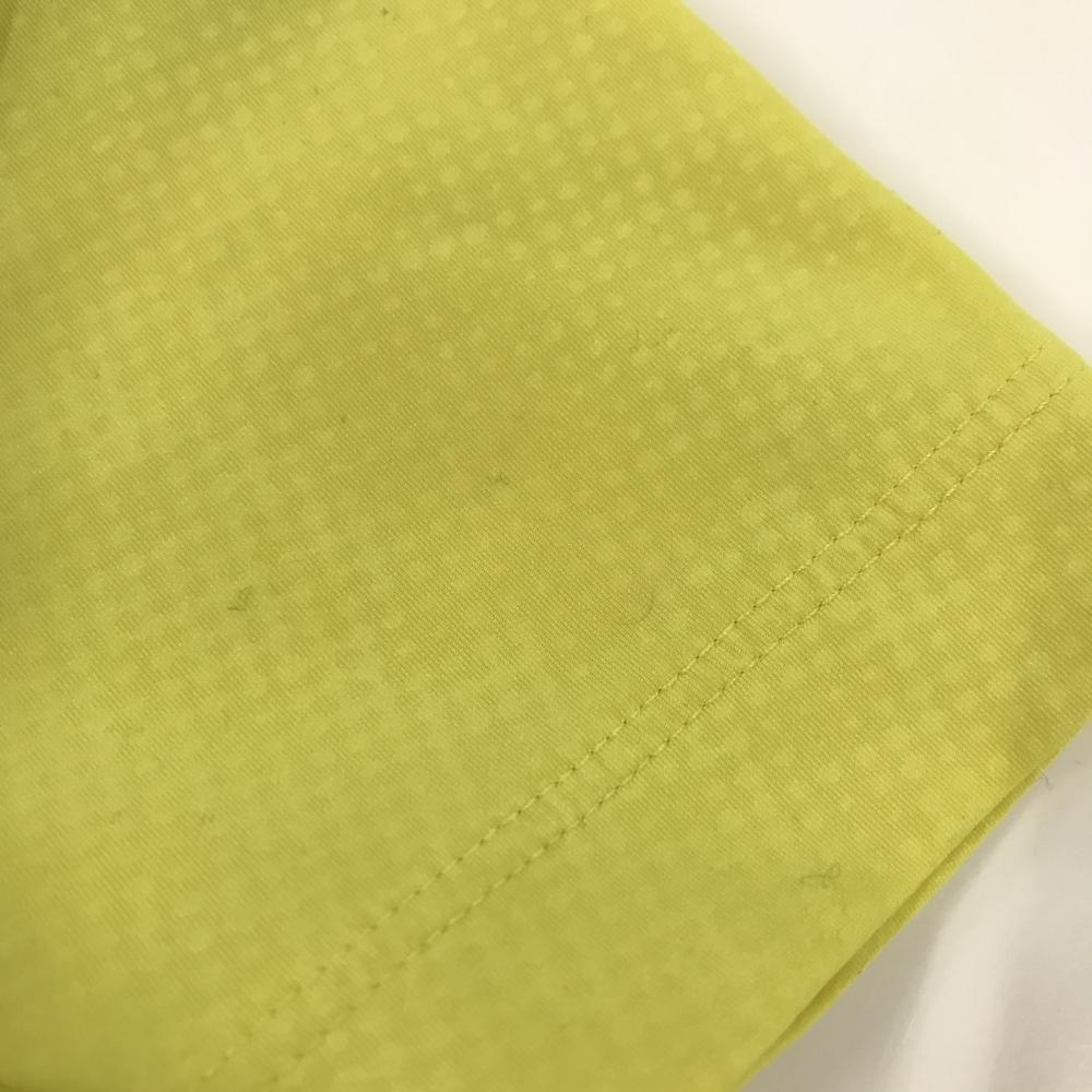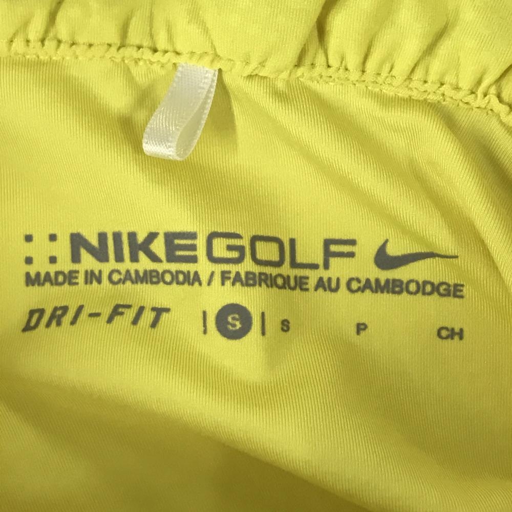 【美品】ナイキゴルフ 半袖ハイネックシャツ イエロー 地模様 ハーフジップ ネックドローコード レディース S ゴルフウェア NIKE