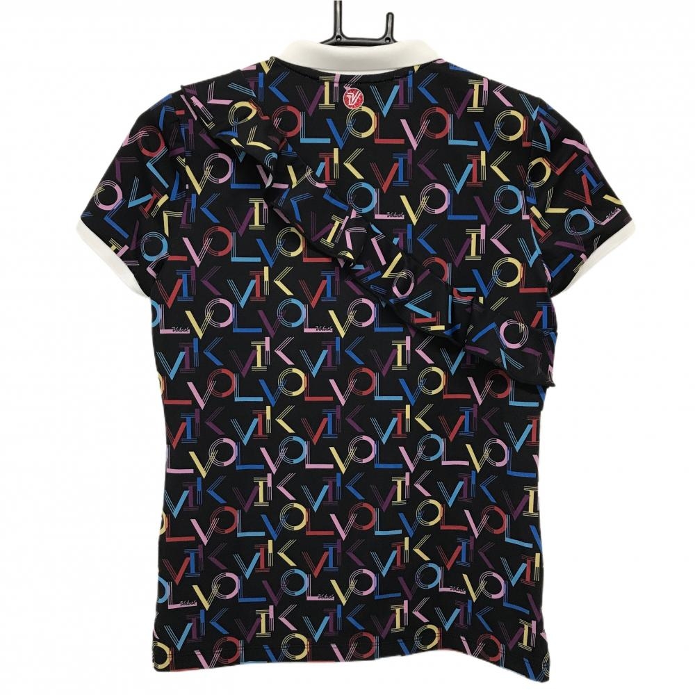 【超美品】ボルビック 半袖ポロシャツ 黒×マルチカラー ロゴ総柄 韓国モデル 一部フリル レディース 85 ゴルフウェア volvik