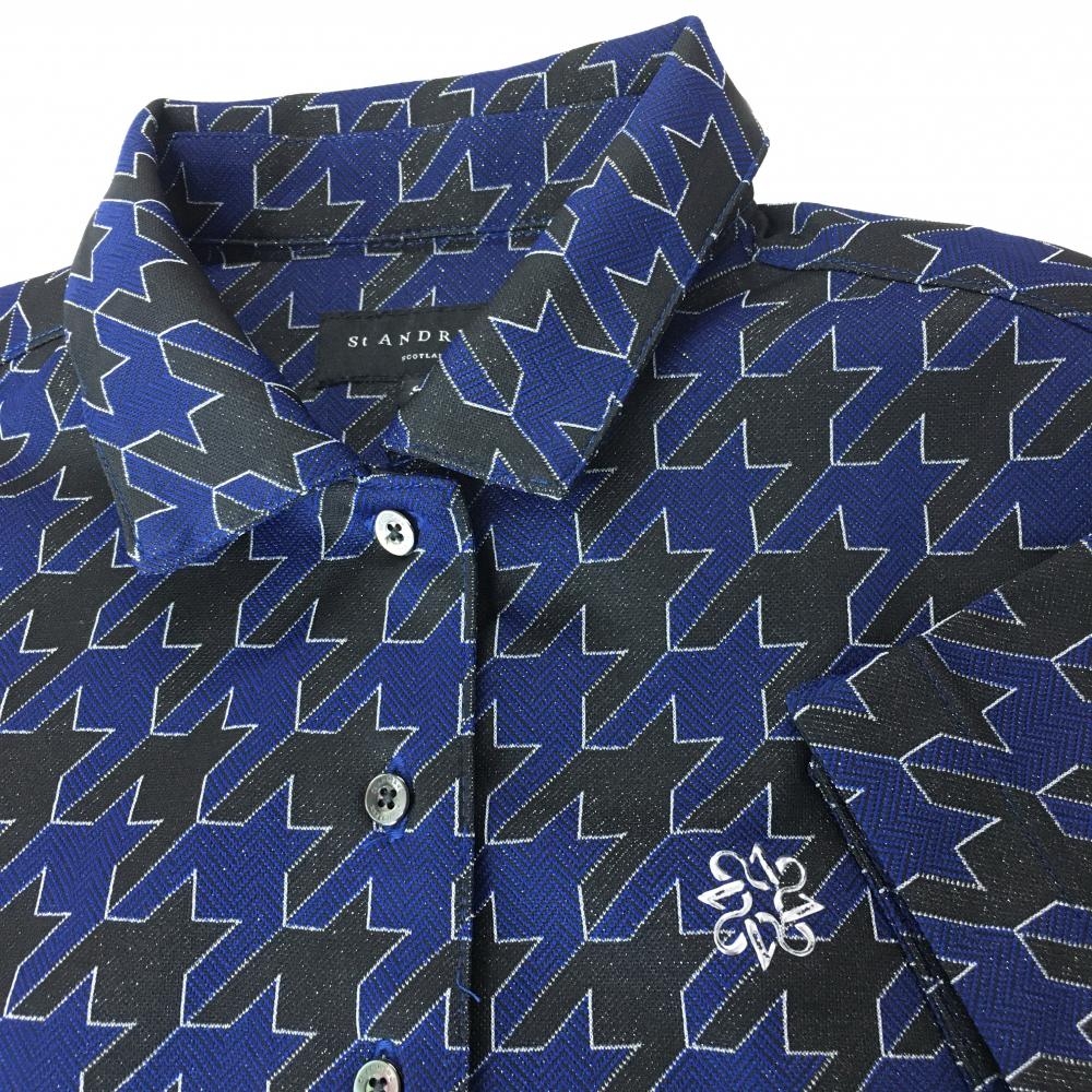 【超美品】セントアンドリュース 半袖ポロシャツ ネイビー×黒 千鳥格子 シルバーラメ レディース S ゴルフウェア St ANDREWS