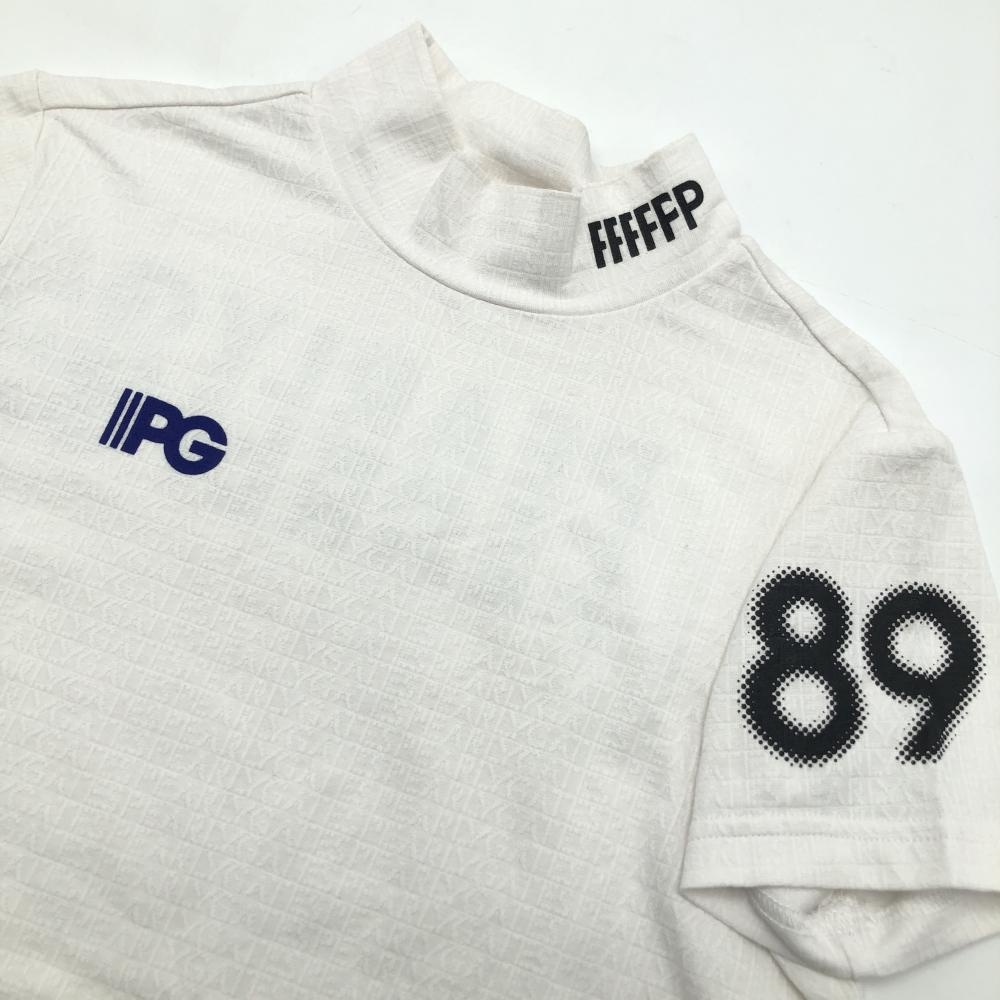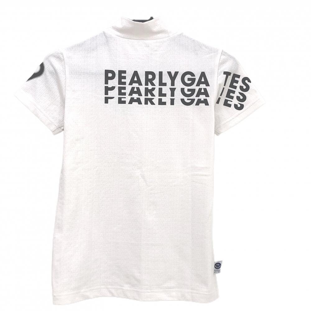 【超美品】パーリーゲイツ 半袖ハイネックシャツ 白 ロゴ総柄地模様 ストレッチ レディース 00(XS) ゴルフウェア PEARLY GATES