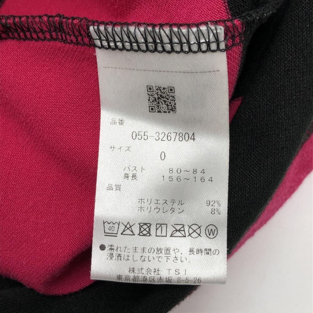 【超美品】パーリーゲイツ 半袖ハイネックシャツ 黒×ピンク ボーダー ストレッチ レディース 0(S) ゴルフウェア PEARLY GATES