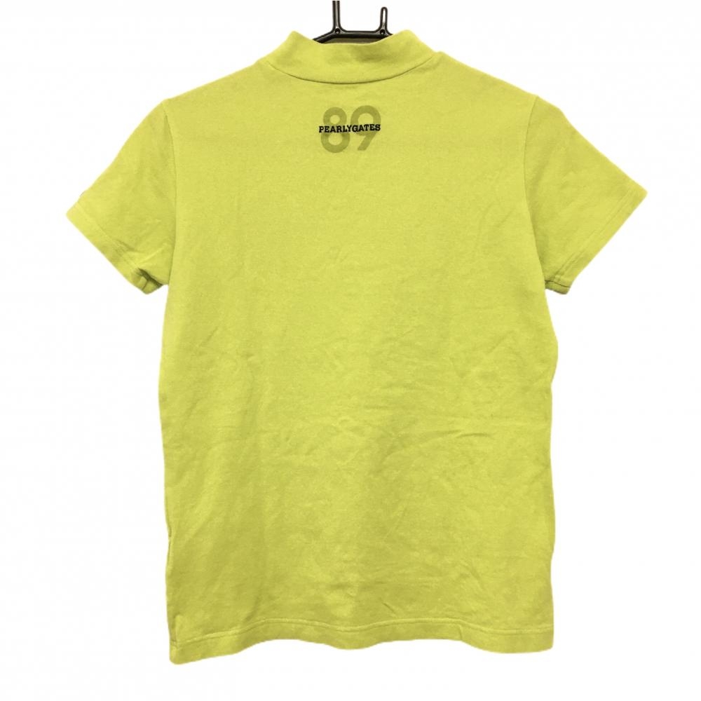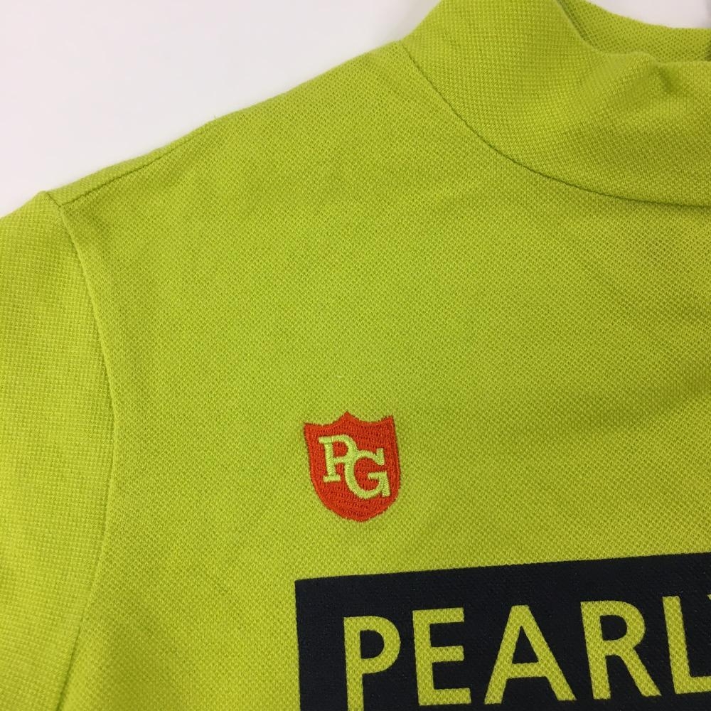 【美品】パーリーゲイツ 半袖ハイネックシャツ ライトグリーン×ネイビー フロントロゴ レディース 2(L) ゴルフウェア PEARLY GATES