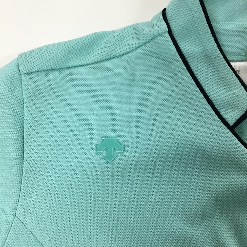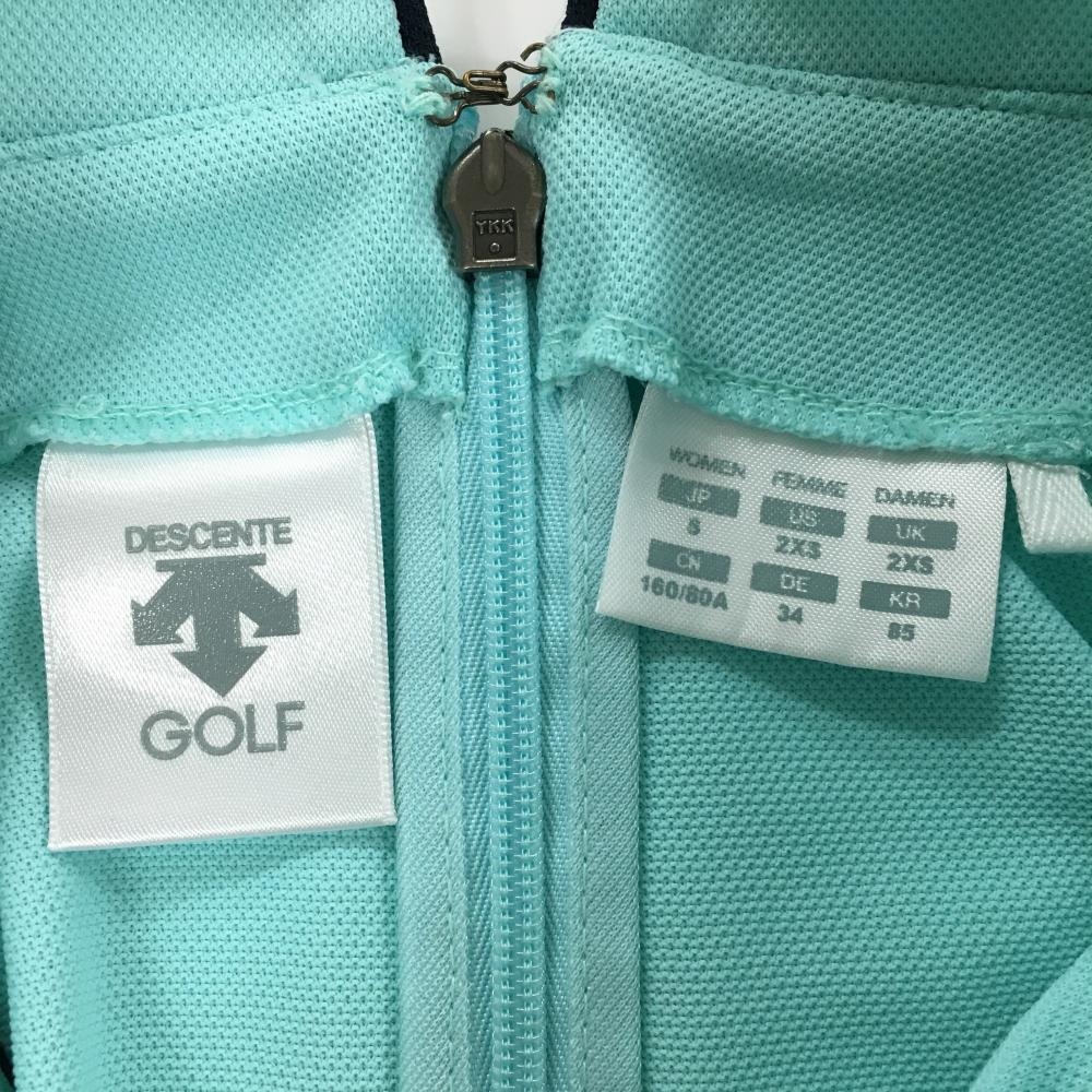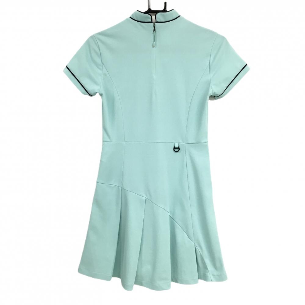 【超美品】デサントゴルフ 半袖スキッパーワンピース ライトブルー×黒 裾プリーツ 韓国モデル レディース S ゴルフウェア DESCENTE