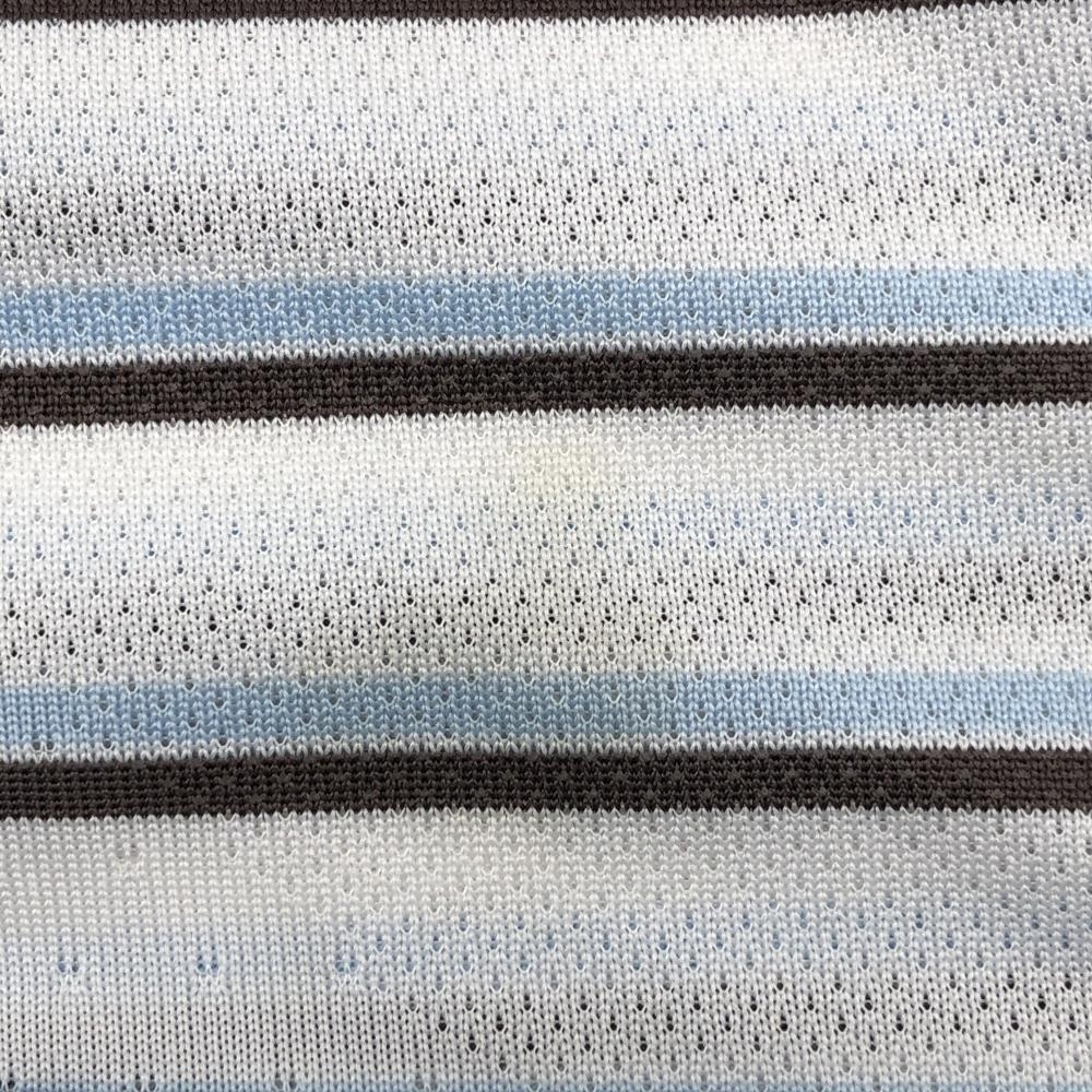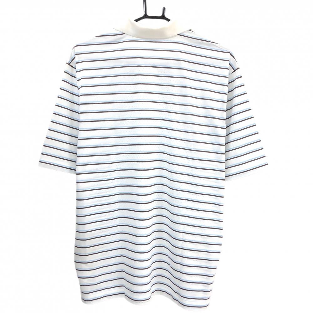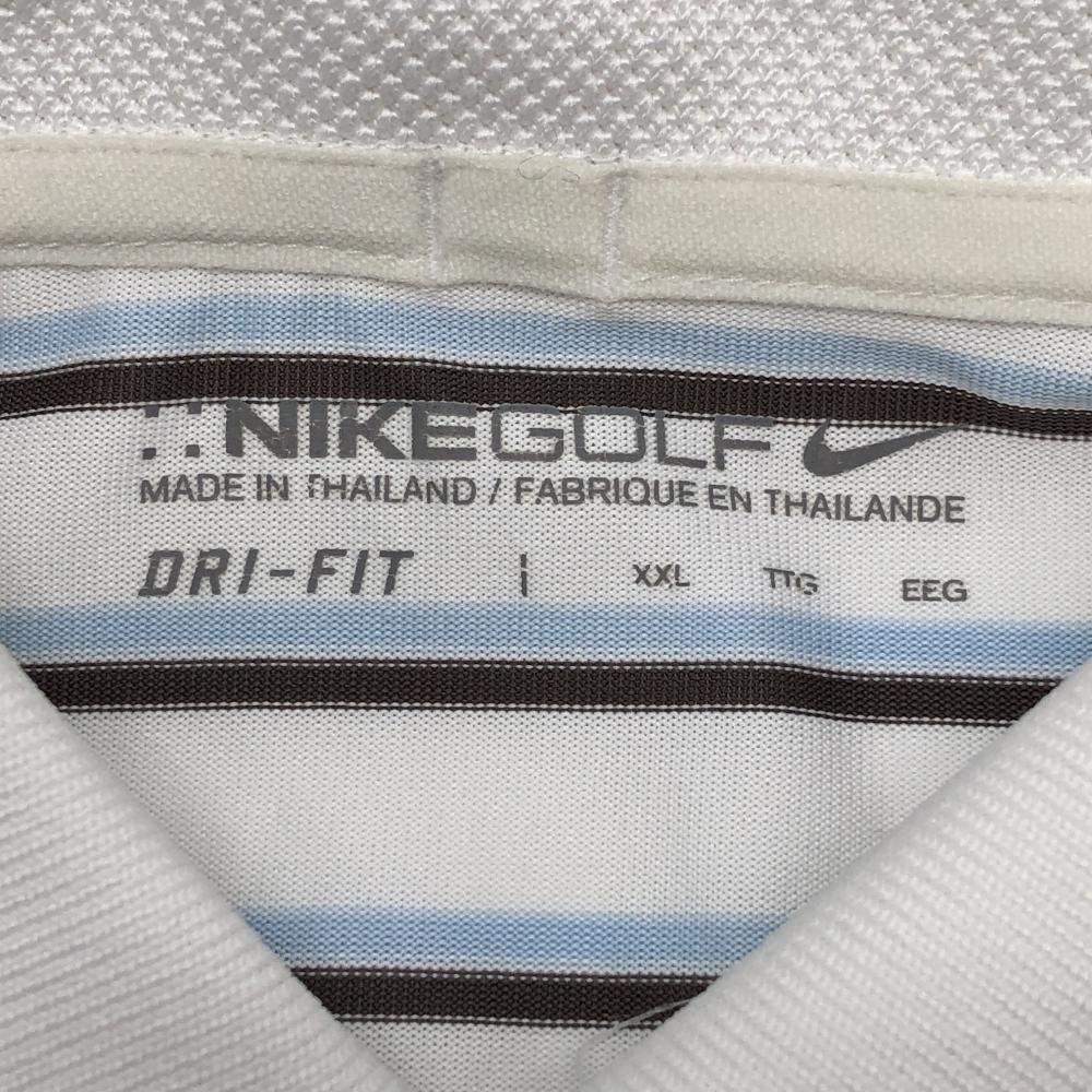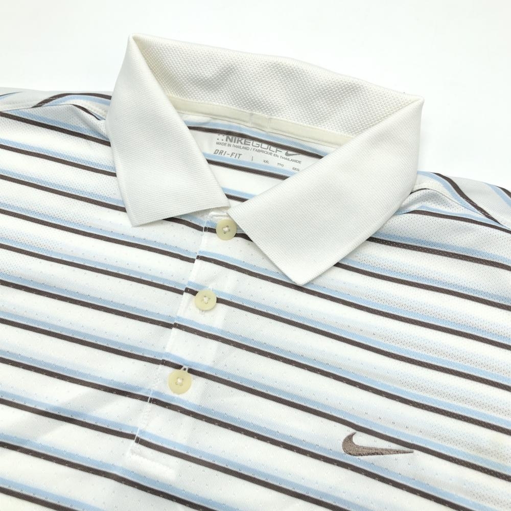 【美品】ナイキ 半袖ポロシャツ 白×ブラウン×ライトブルー ボーダー メンズ XXL ゴルフウェア NIKE