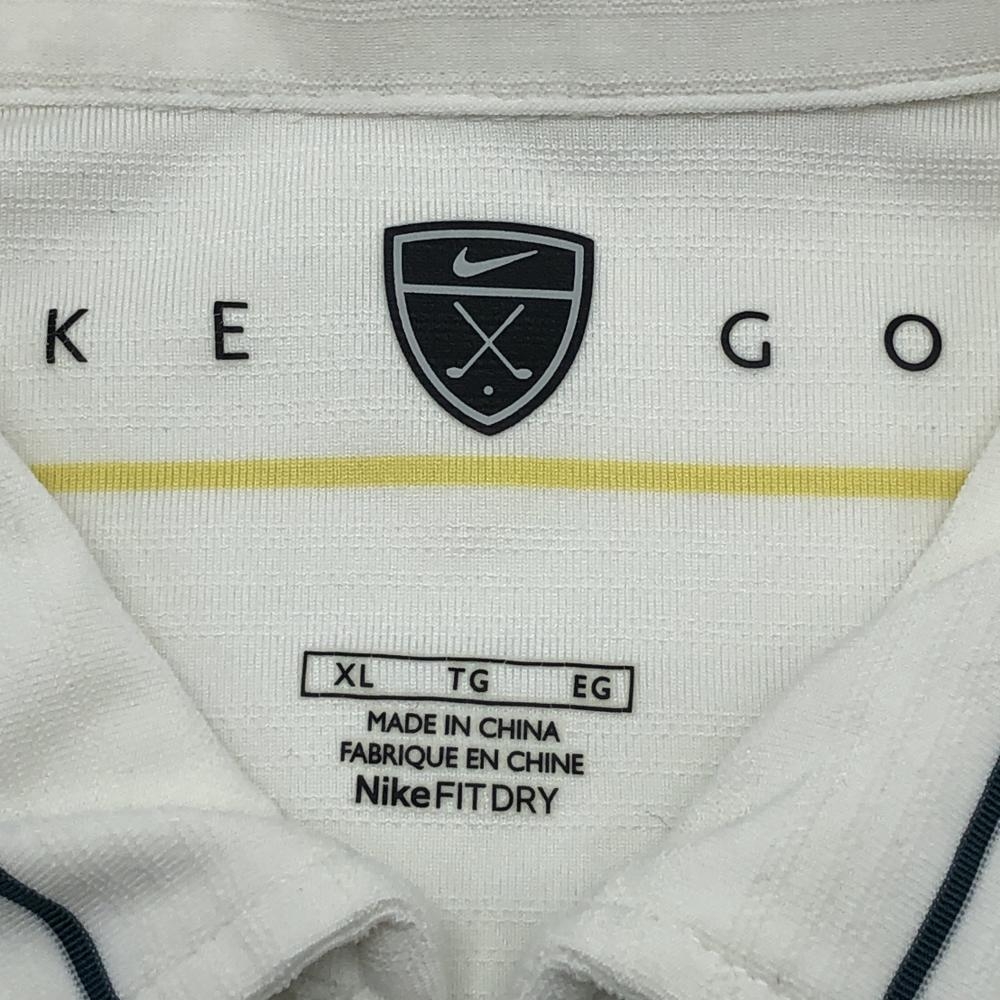 ナイキ 半袖ポロシャツ 白×ブルー×イエロー ボーダー メンズ XL TG EG ゴルフウェア NIKE