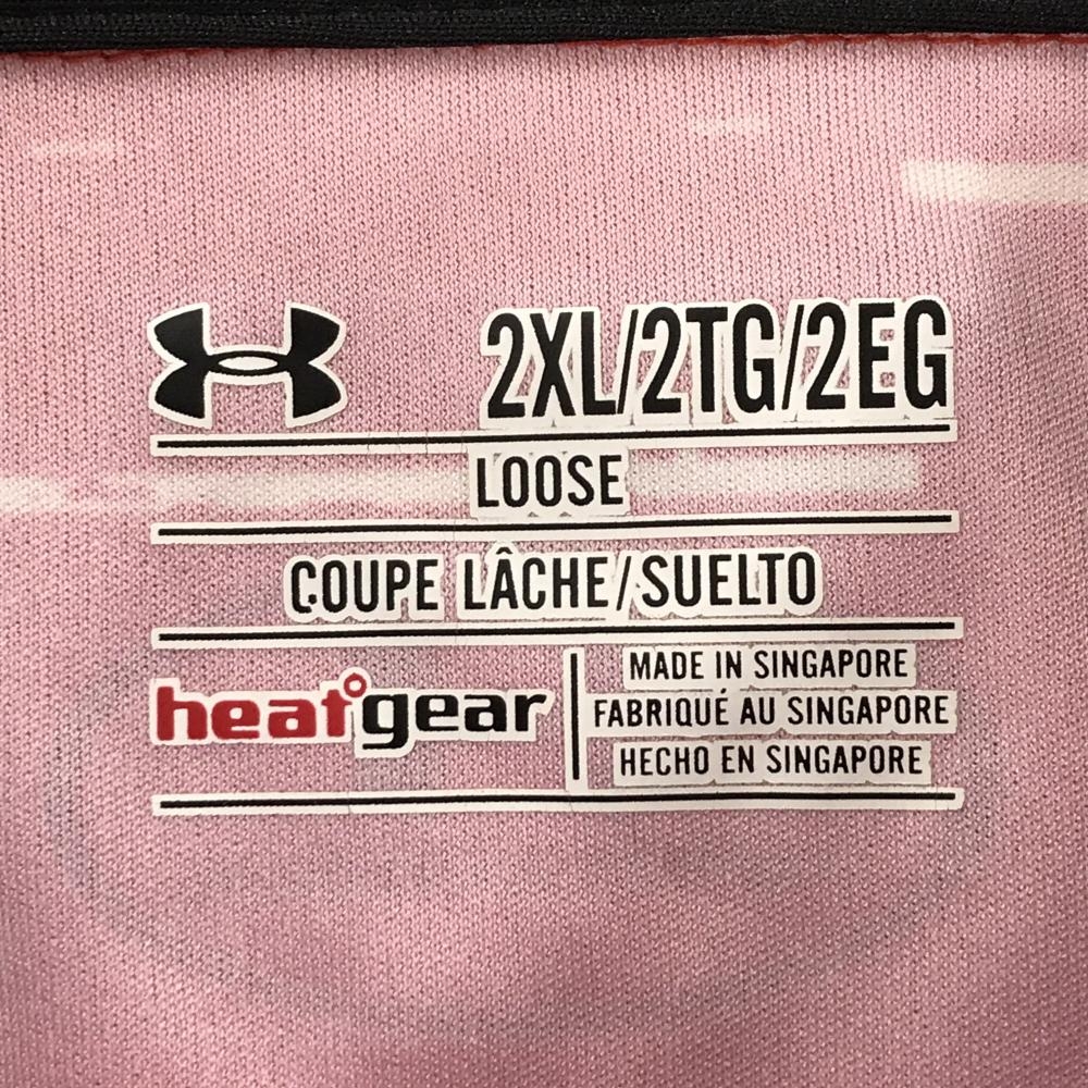 【美品】アンダーアーマー 半袖ポロシャツ レッド×白 総柄 ロゴ刺しゅ メンズ 2XL ゴルフウェア 大きいサイズ UNDER ARMOUR