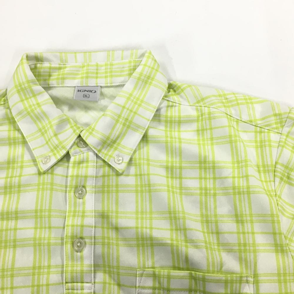 【超美品】イグニオ 半袖ポロシャツ 白×ライトグリーン チェック ボタンダウン iCOOL メンズ 3L ゴルフウェア 大きいサイズ IGNIO