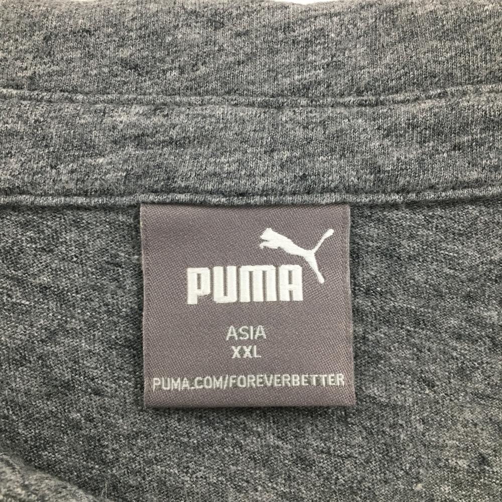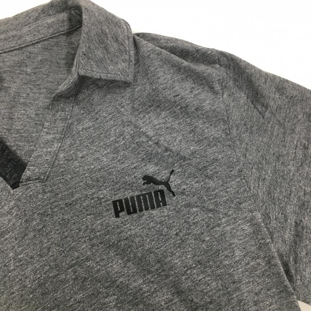 【超美品】プーマ スキッパーシャツ 杢グレー ロゴプリント メンズ XXL ゴルフウェア PUMA
