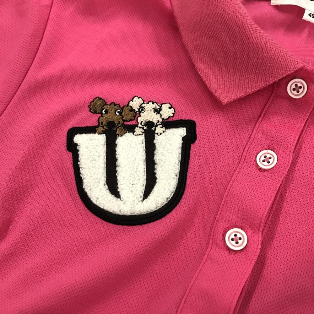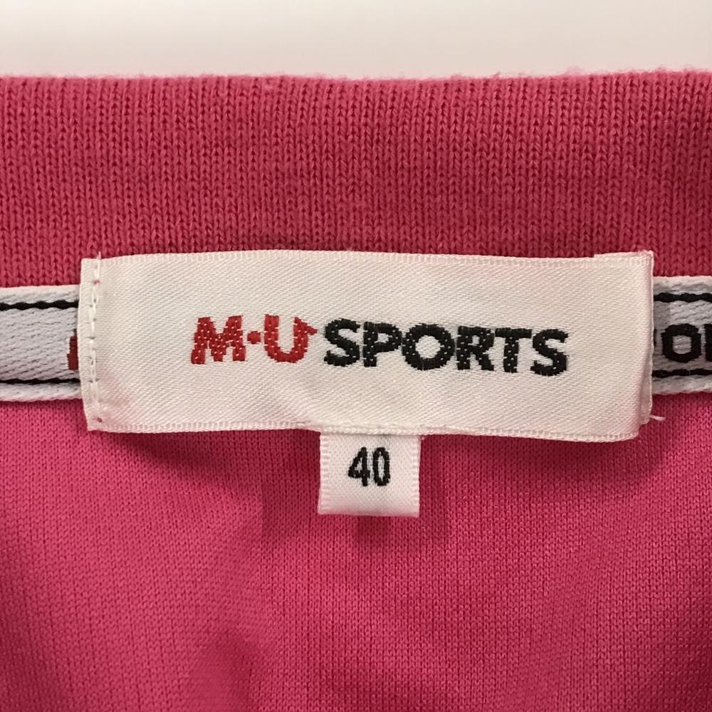 【美品】MUスポーツ 半袖ポロシャツ ピンク ドッグ刺しゅう レディース 40(M) ゴルフウェア M・U SPORTS