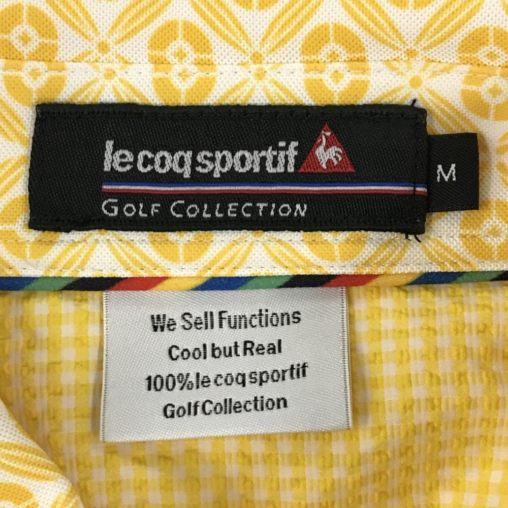 【超美品】ルコックゴルフ 半袖ポロシャツ 白×イエロー 総柄 ロゴ刺しゅう ボタンダウン メンズ M ゴルフウェア le coq sportif