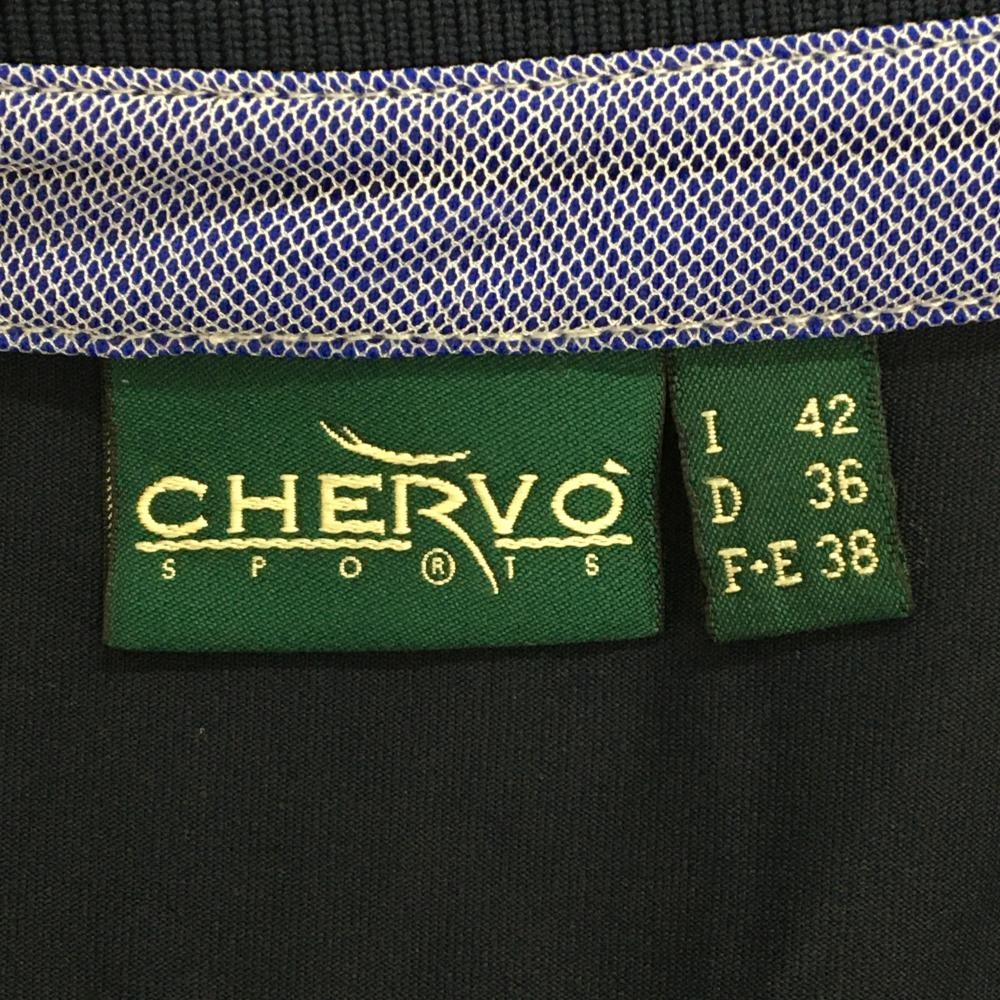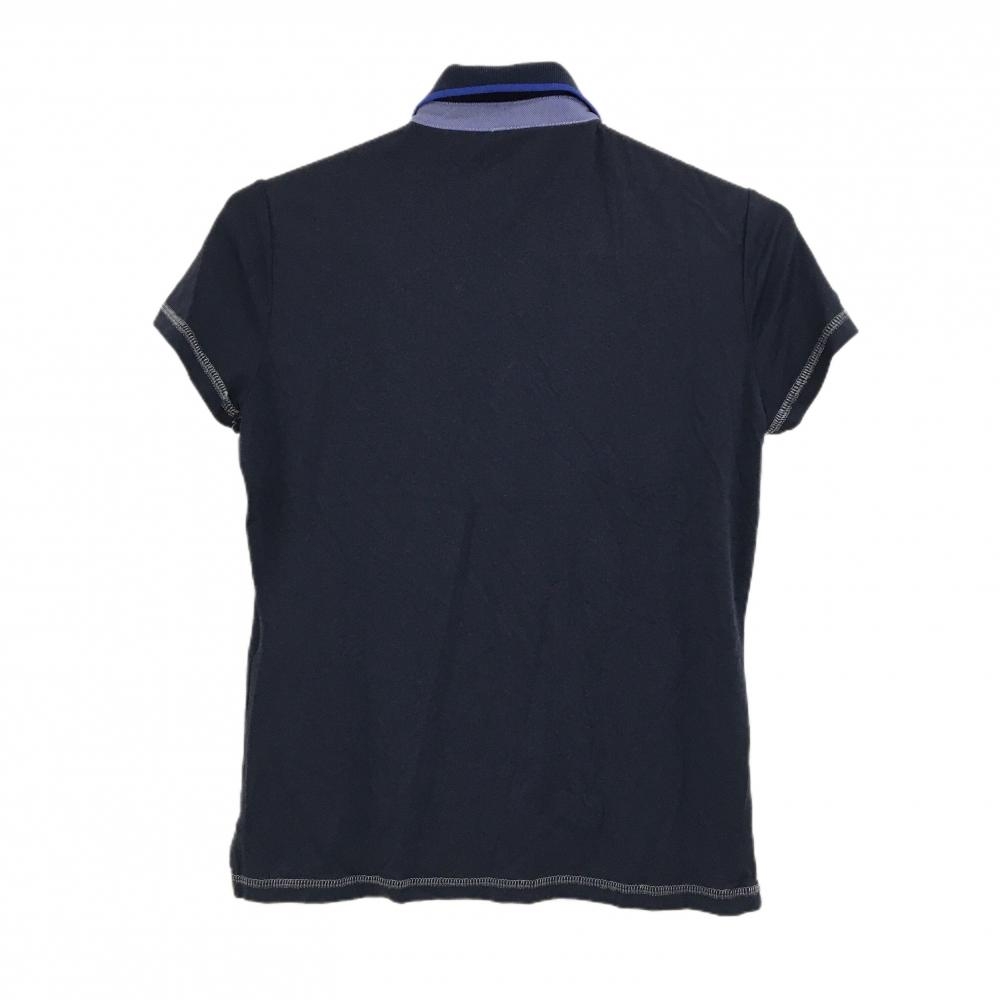 【美品】シェルボ 半袖ポロシャツ ネイビー スナップボタン ナイロン混 レディース S ゴルフウェア CHERVO