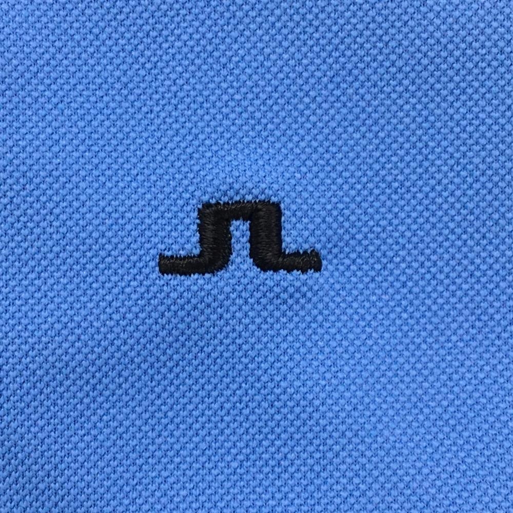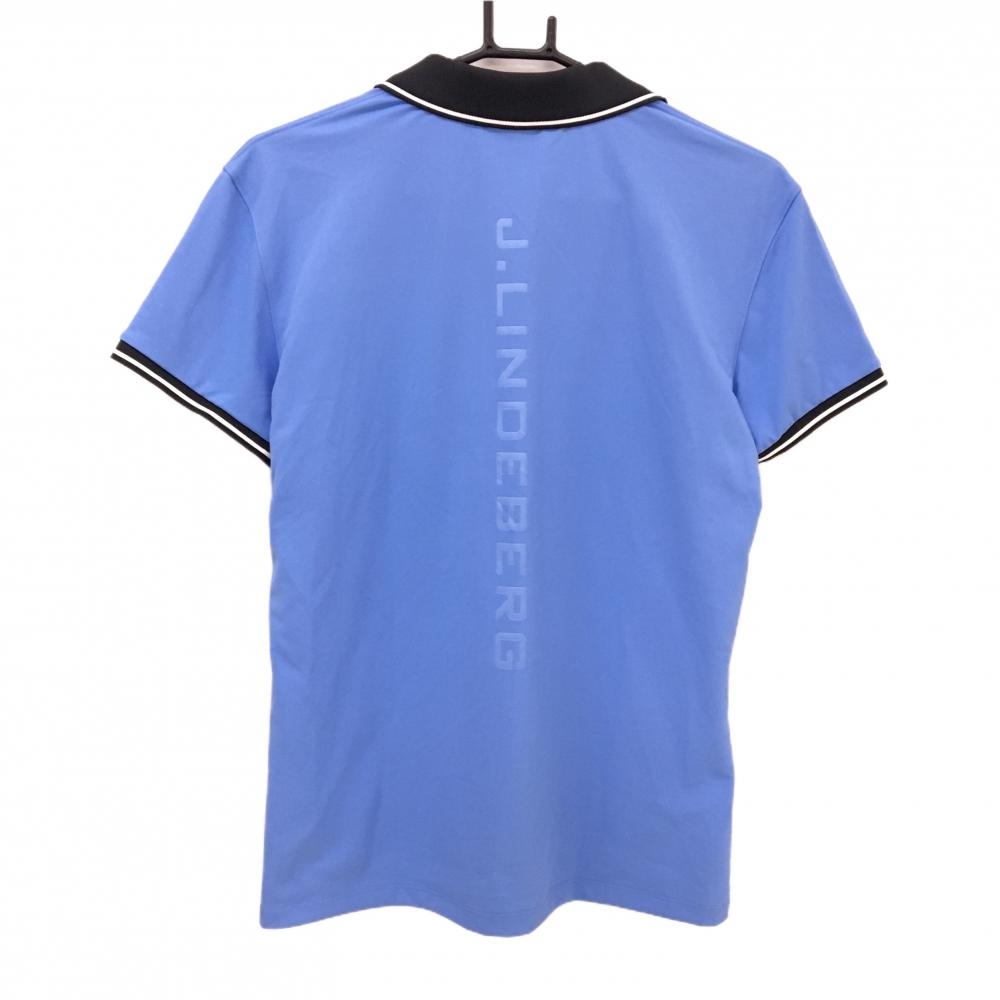 【超美品】ジェイリンドバーグ 半袖シャツ ライトブルー×白 背面ロゴ メンズ L ゴルフウェア J.LINDEBERG
