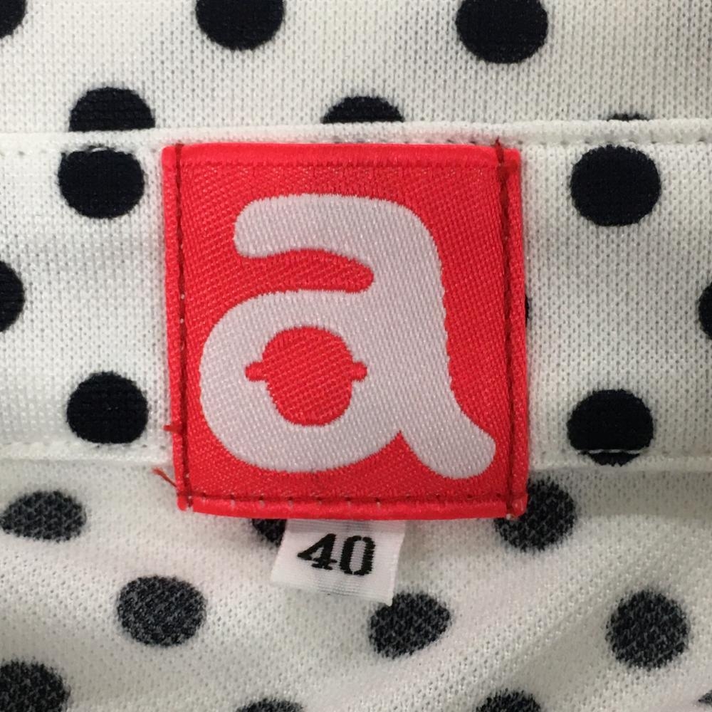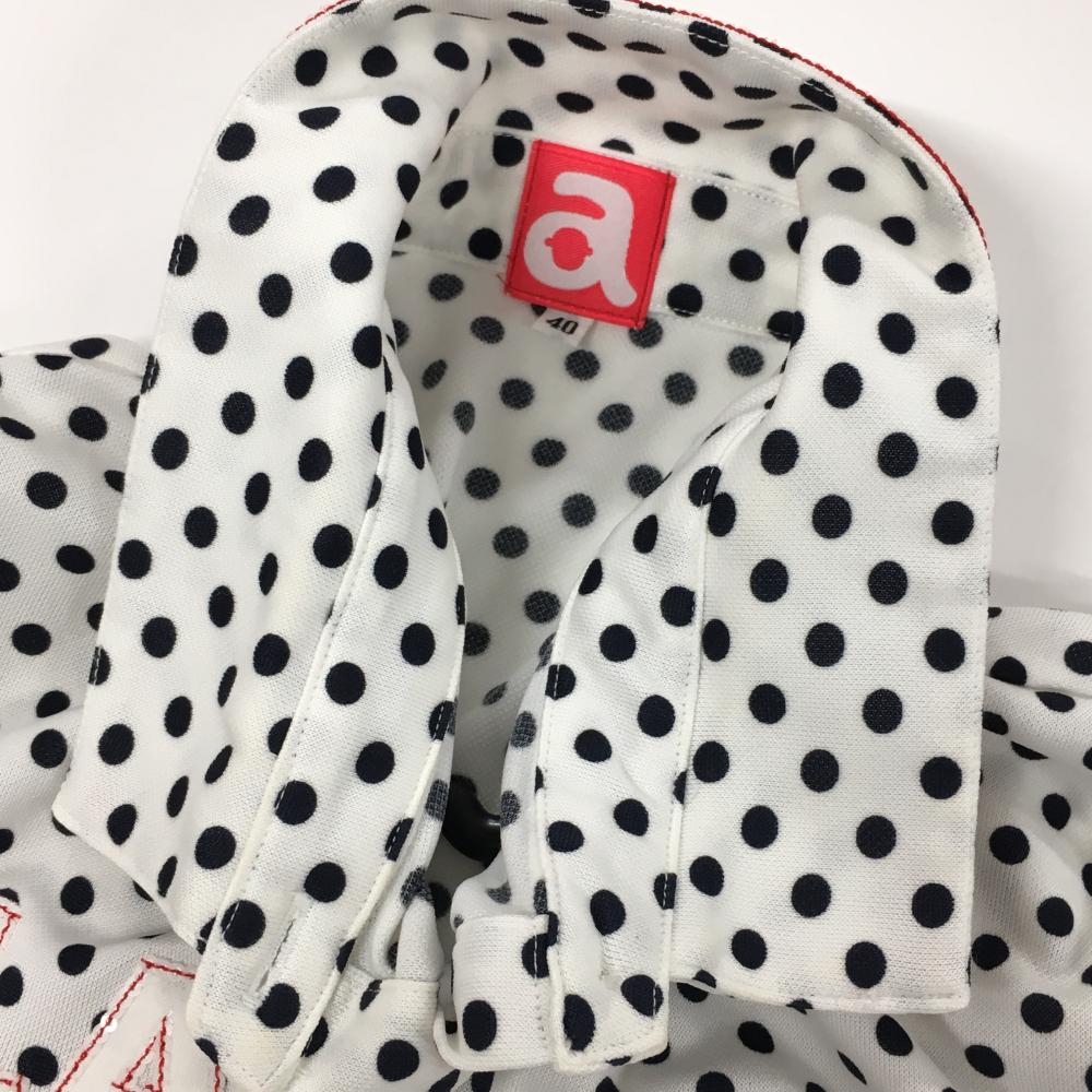 アルチビオ 半袖ポロシャツ 白×ダークネイビー ドット 袖口ゴム レディース 40(L) ゴルフウェア archivio