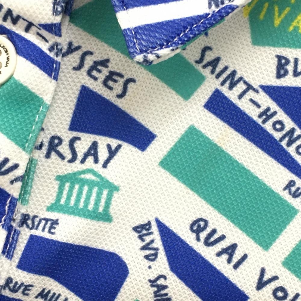 【超美品】ビバハート 半袖ポロシャツ ミントグリーン×ブルー×白 総柄 レディース 40(M) ゴルフウェア VIVA HEART