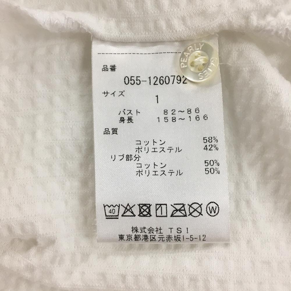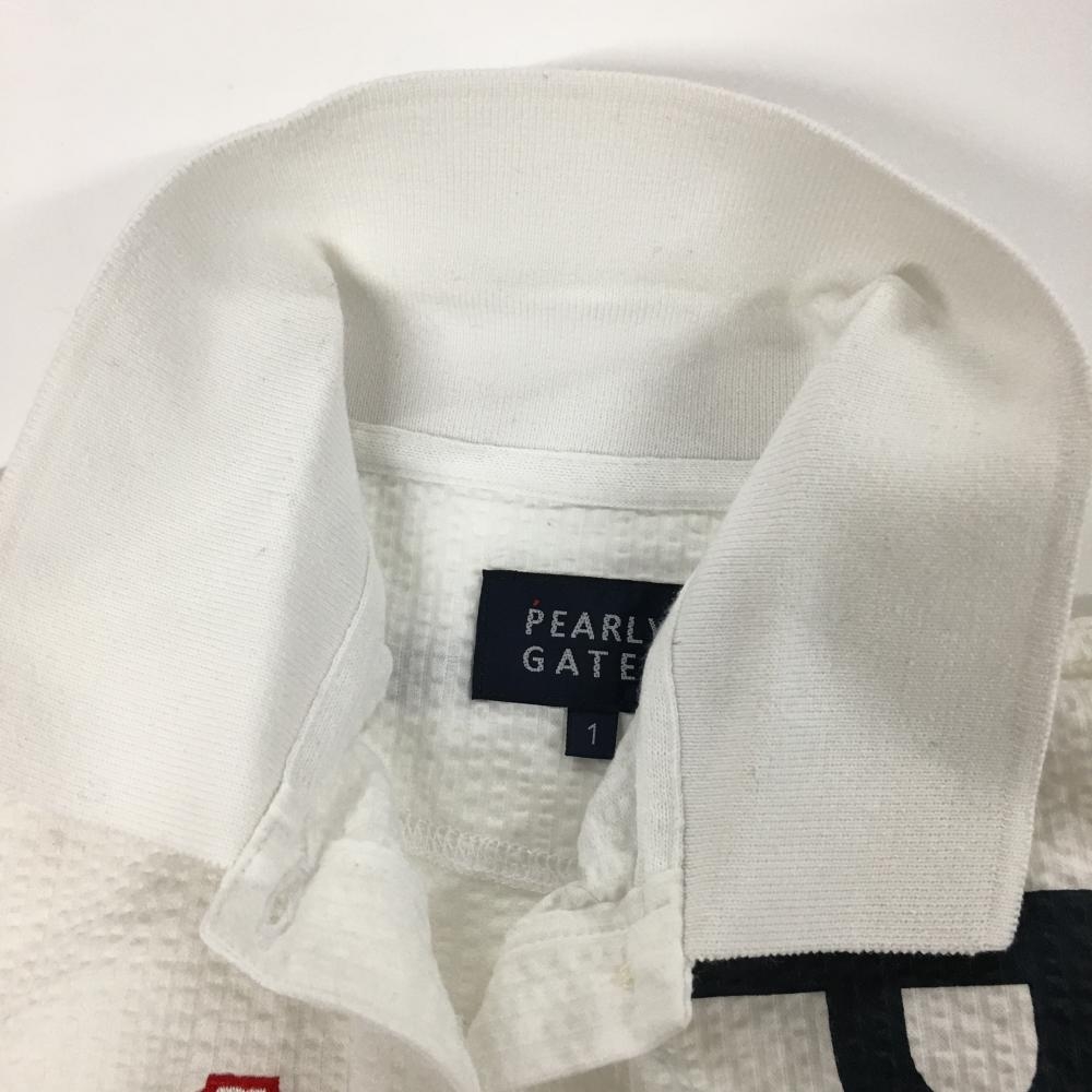 【美品】パーリーゲイツ 半袖ポロシャツ 白×ダークネイビー サッカー生地 ビッグロゴ レディース 1(M) ゴルフウェア PEARLY GATES