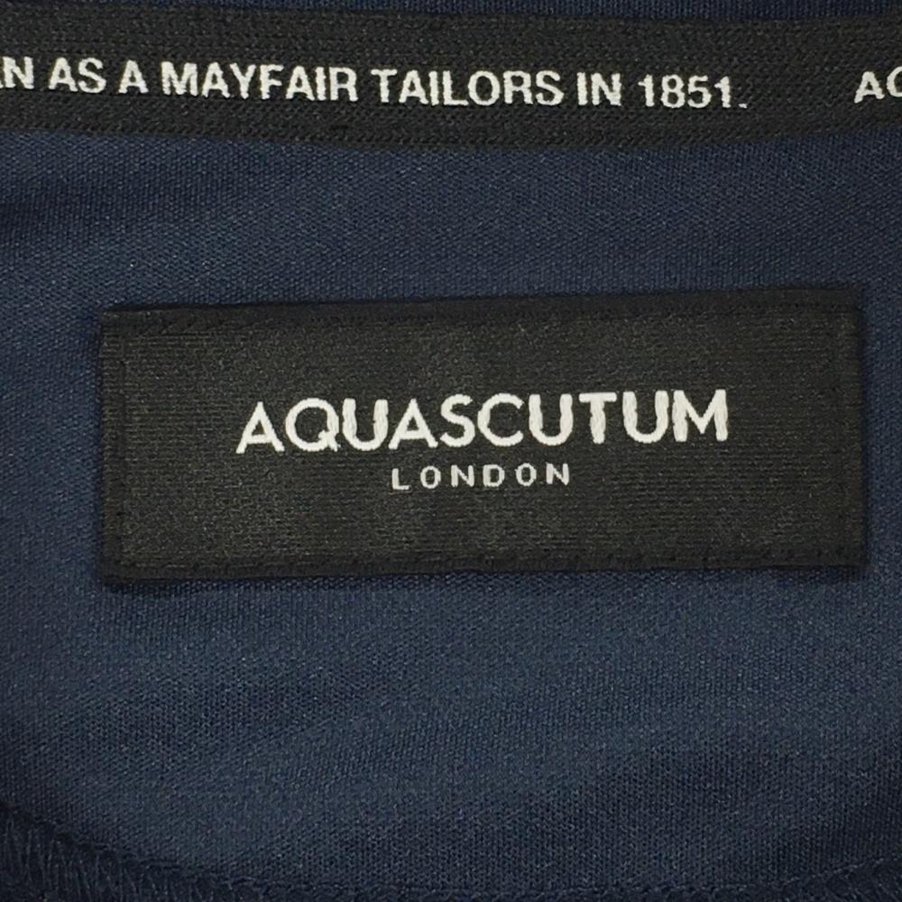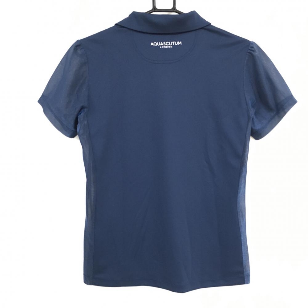 【超美品】アクアスキュータム 半袖スキッパーシャツ ネイビー系 袖・サイド透け感&ラメ レディース ゴルフウェア AQUASCUTUM