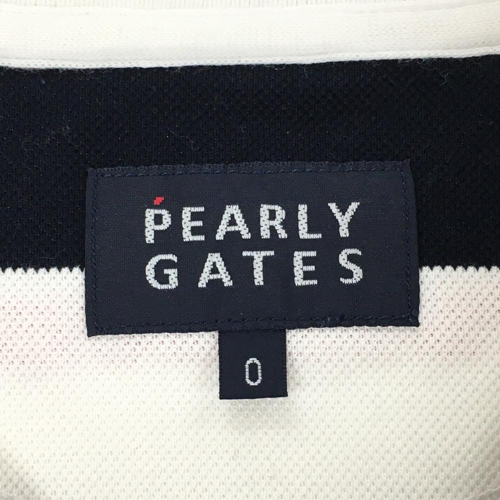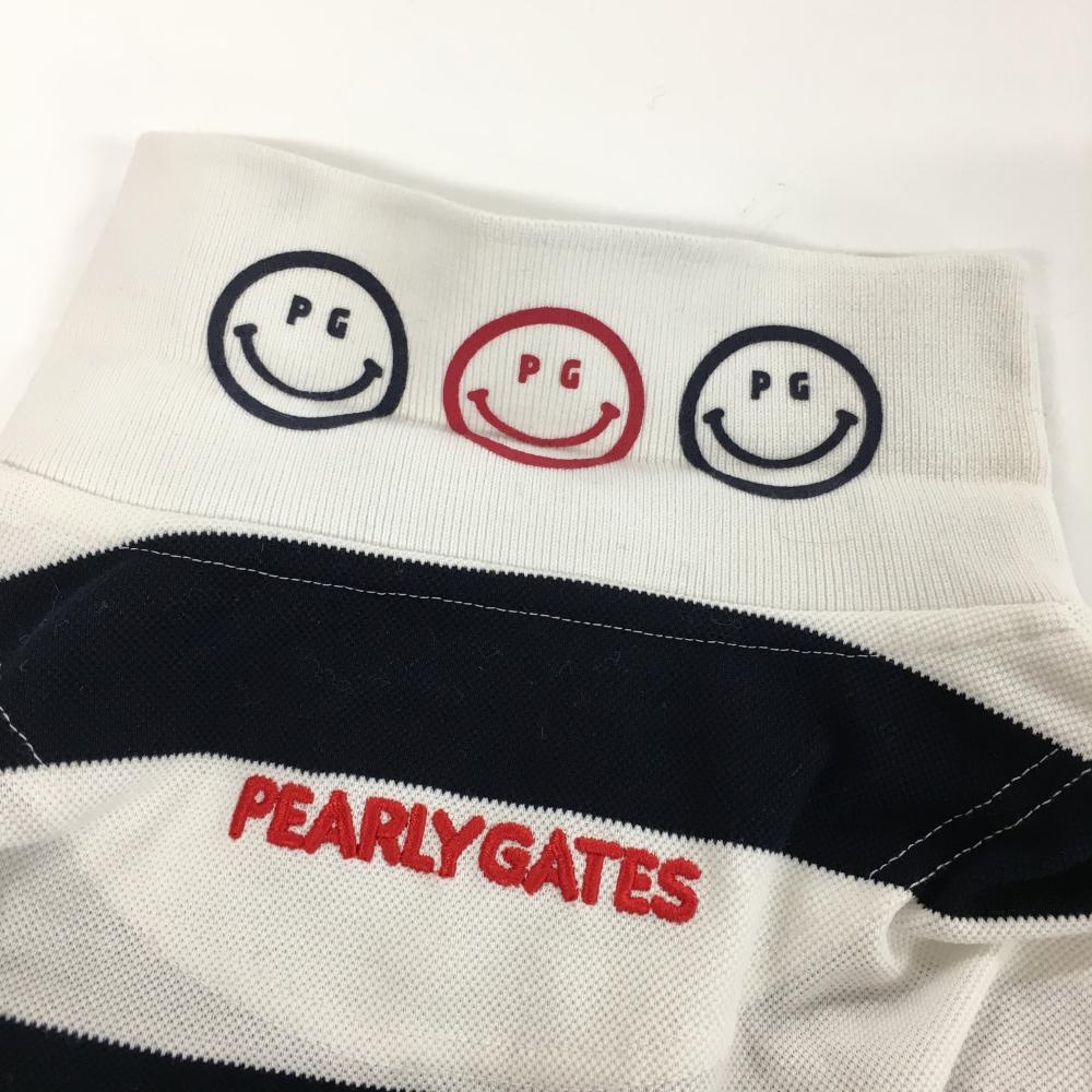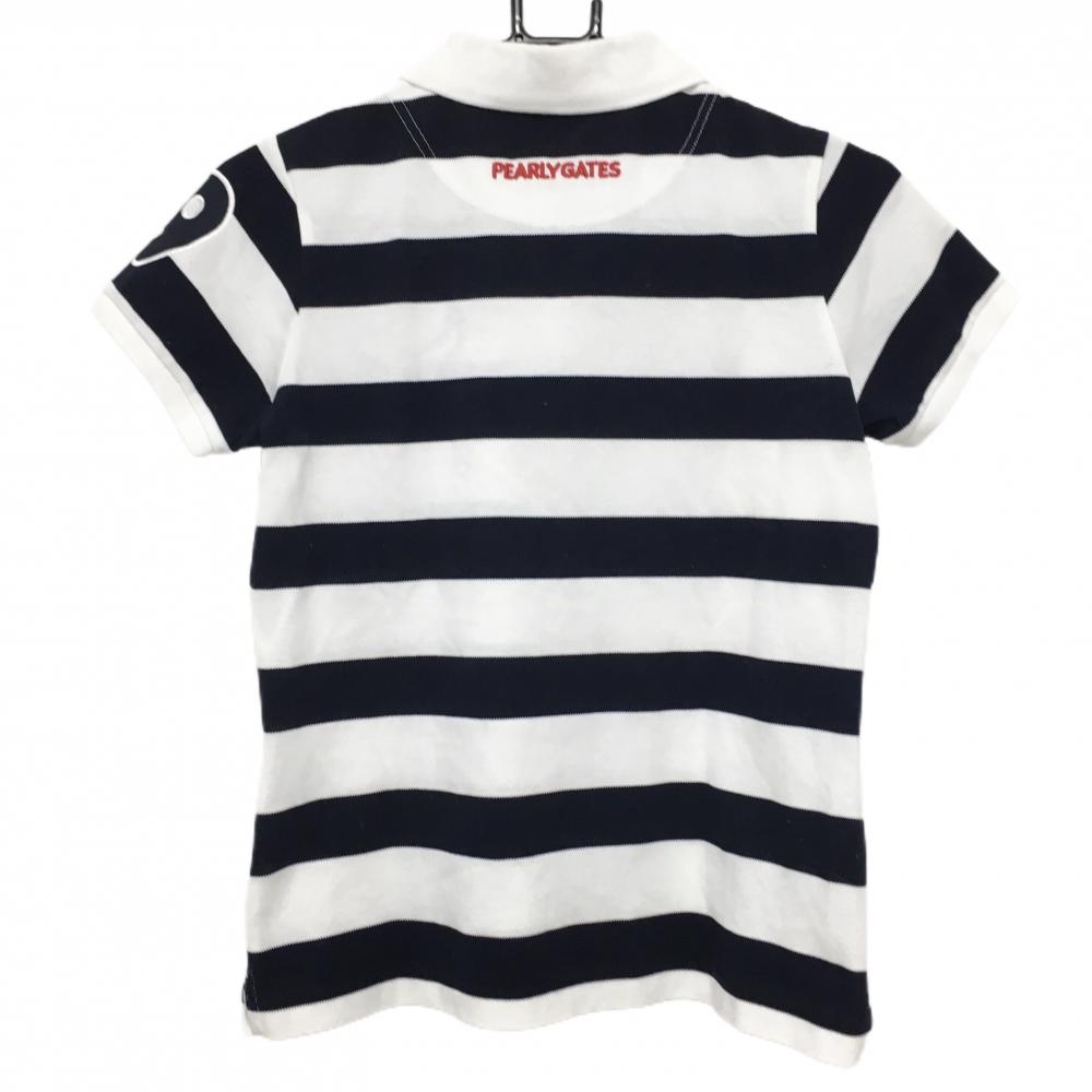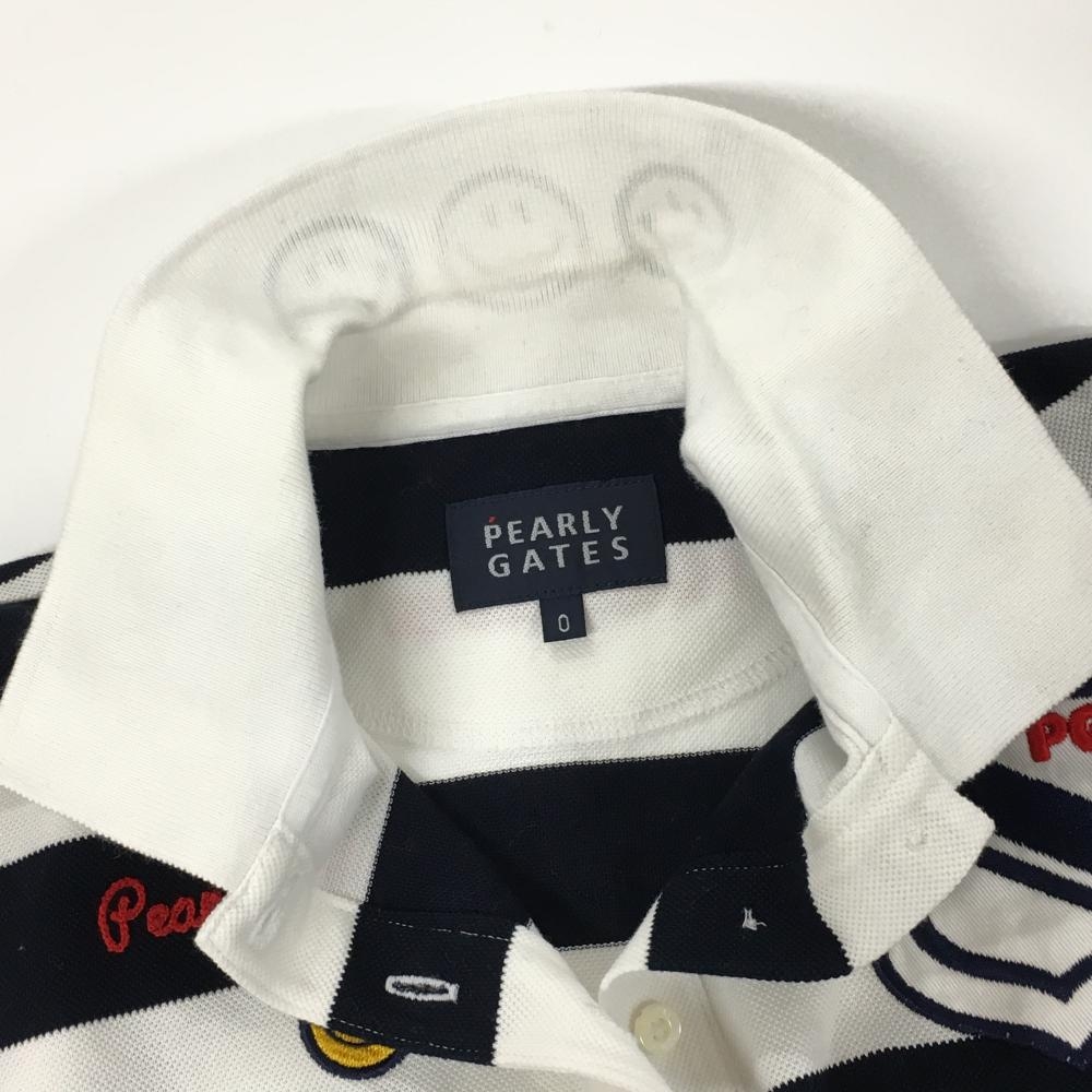 【美品】パーリーゲイツ 半袖ポロシャツ 白×ネイビー ボーダー 襟裏ニコちゃん スマイル レディース 0(S) ゴルフウェア PEARLY GATES