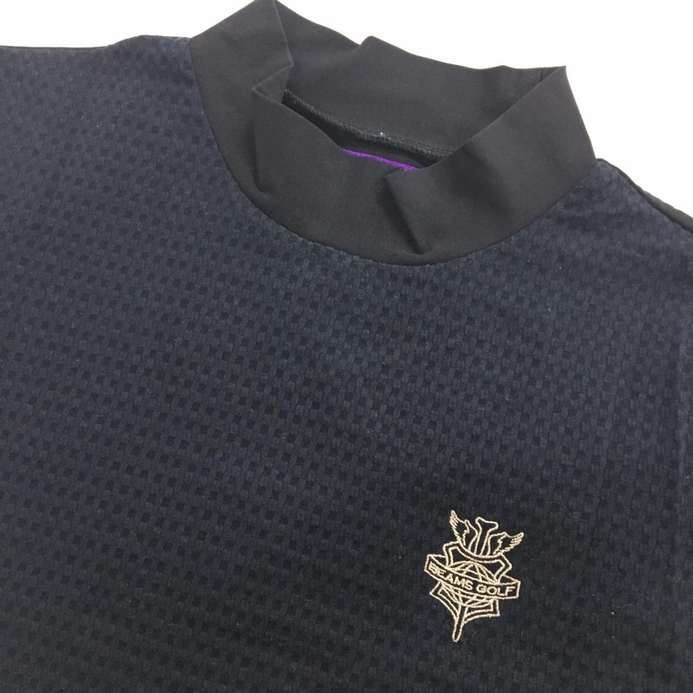 【美品】ビームスゴルフ 半袖ハイネックシャツ ネイビー 前身頃織生地 レディース M ゴルフウェア BEAMS GOLF