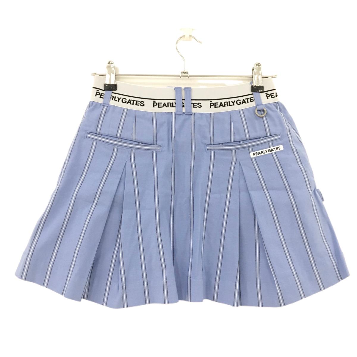 【超美品】パーリーゲイツ スカート ライトブルー×白 ストライプ レディース 0(S) ゴルフウェア 2025年モデル PEARLY GATES