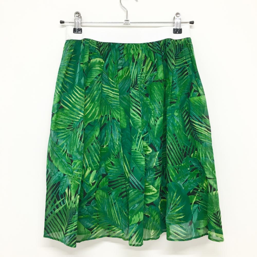 【超美品】パーリーゲイツ スカート グリーン×黒 リーフ柄 シアー素材 ペチコート付 レディース 0 ゴルフウェア PEARLY GATES