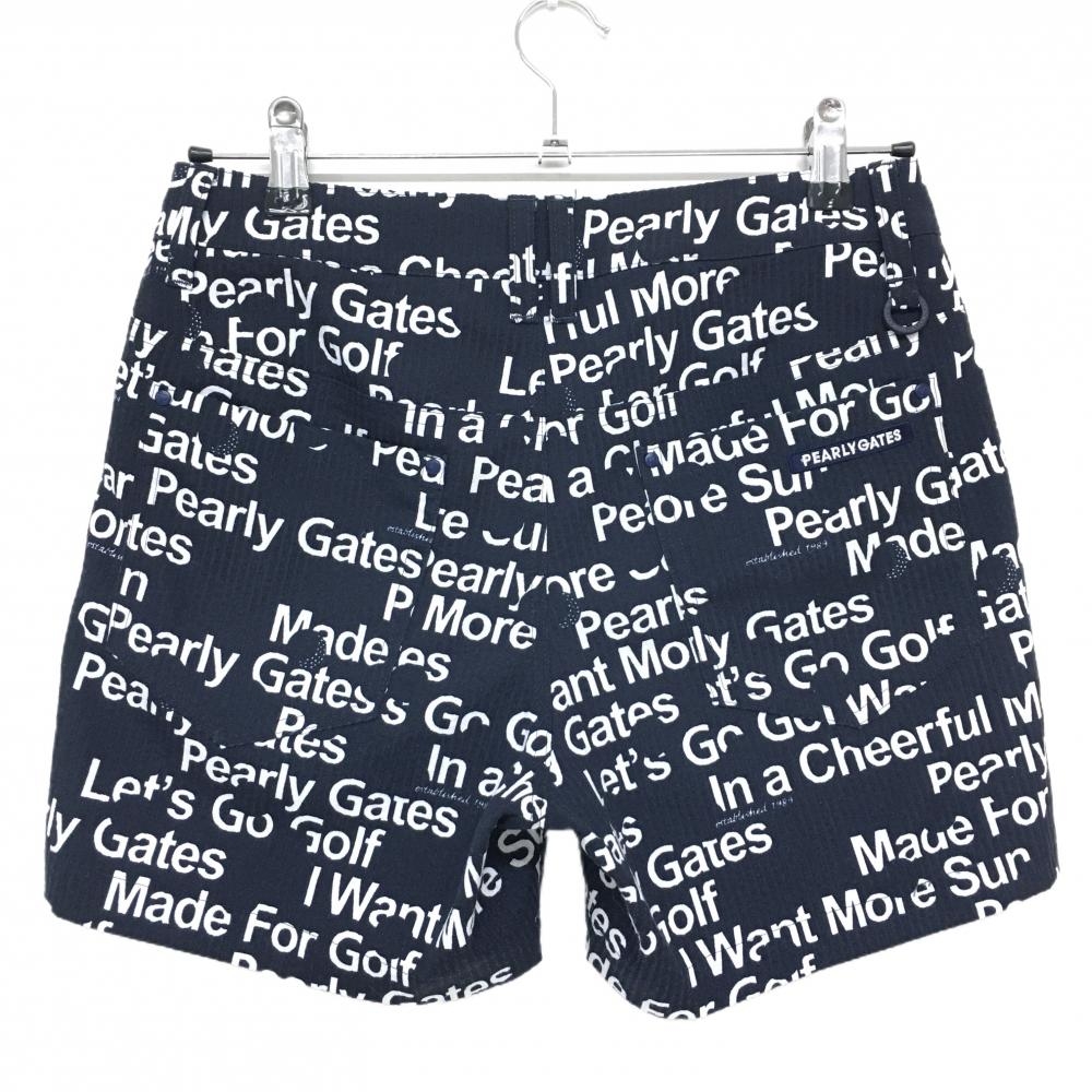 【美品】パーリーゲイツ ショートパンツ ネイビー×白 ロゴ総柄 織生地 レディース 1(M) ゴルフウェア 2024年モデル PEARLY GATES