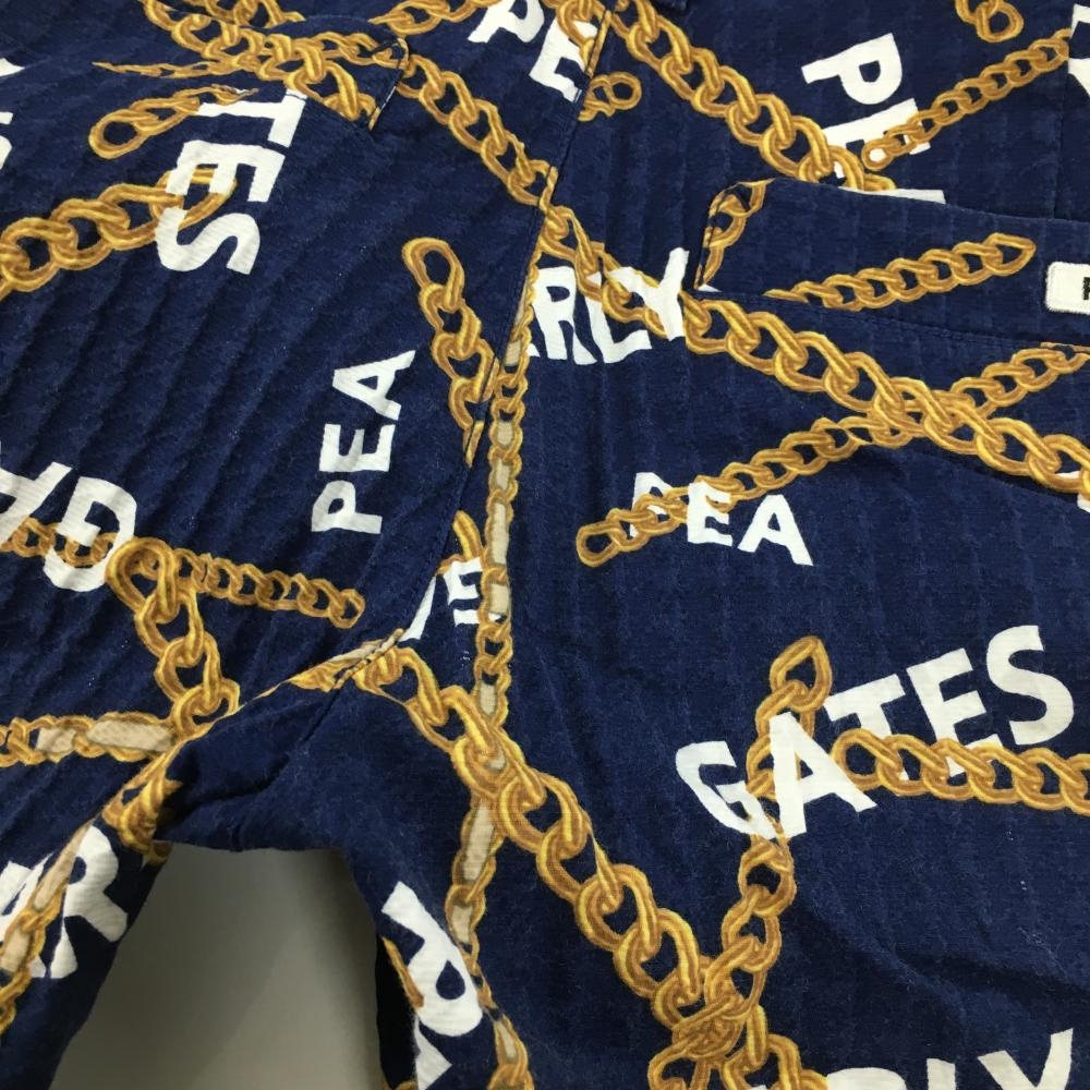 パーリーゲイツ パンツ ネイビー×白×ブラウン系 チェーン総柄 ロゴ総柄 レディース 0(S) ゴルフウェア PEARLY GATES