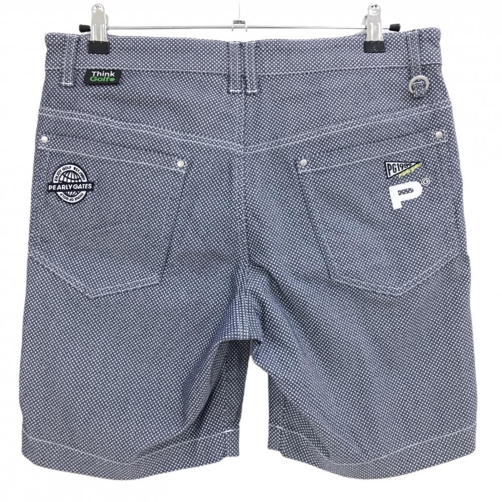 【超美品】パーリーゲイツ ハーフパンツ ネイビー 総柄 ニコちゃん フラッグ刺しゅう ティー装着可 メンズ 5(L) ゴルフウェア PEARLY GATES