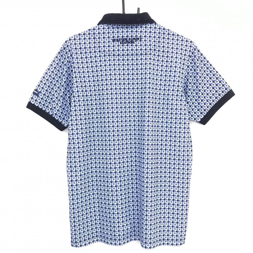 マスターバニー 半袖ポロシャツ ダークネイビー×パープル系 総柄 襟裏ロゴ メンズ 5(L) ゴルフウェア MASTER BUNNY EDITION