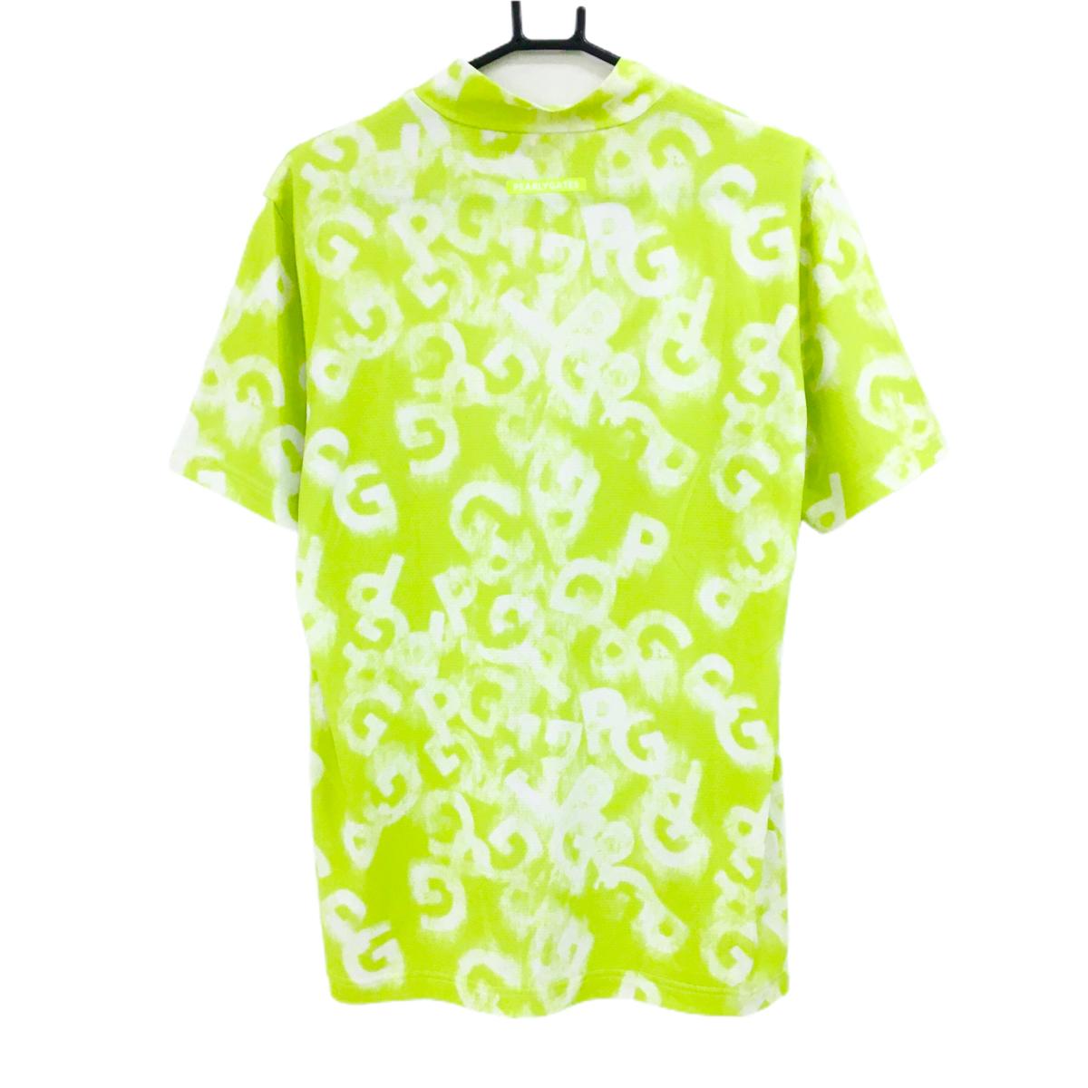 【超美品】パーリーゲイツ 半袖ハイネックシャツ ライムグリーン系×白 英字総柄 メンズ 6(XL) ゴルフウェア 2025年モデル PEARLY GATES