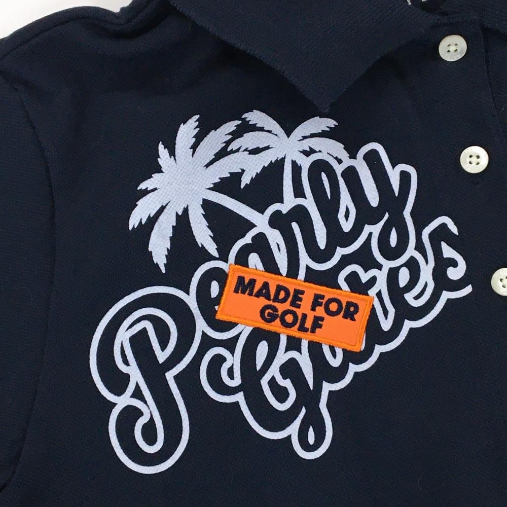 【美品】パーリーゲイツ 半袖ポロシャツ ネイビー×白 ヤシの木 女性 レディース 0(S) ゴルフウェア PEARLY GATES