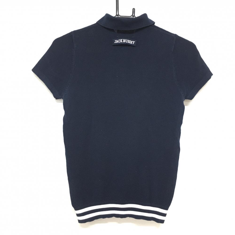 ジャックバニー 半袖ポロシャツ ネイビー ロゴワッペン ニット調 レディース 0(S) ゴルフウェア Jack Bunny