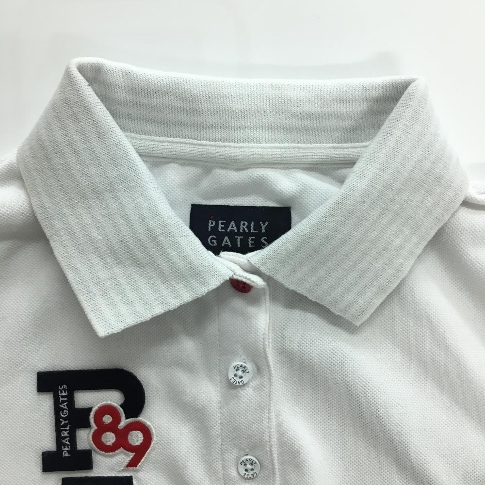 パーリーゲイツ 半袖ポロシャツ 白×ネイビー フェルトワッペン 襟裏ボーダー レディース 0(S) ゴルフウェア PEARLY GATES