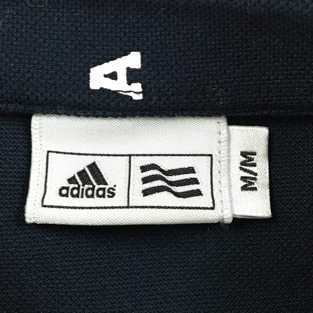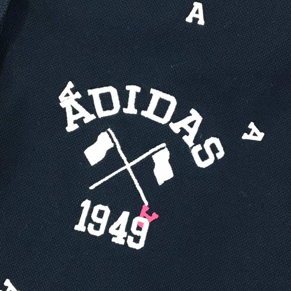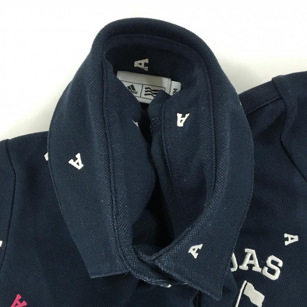 アディダス 半袖ポロシャツ ネイビー×白 A総柄 ロゴ刺しゅう レディース M ゴルフウェア adidas