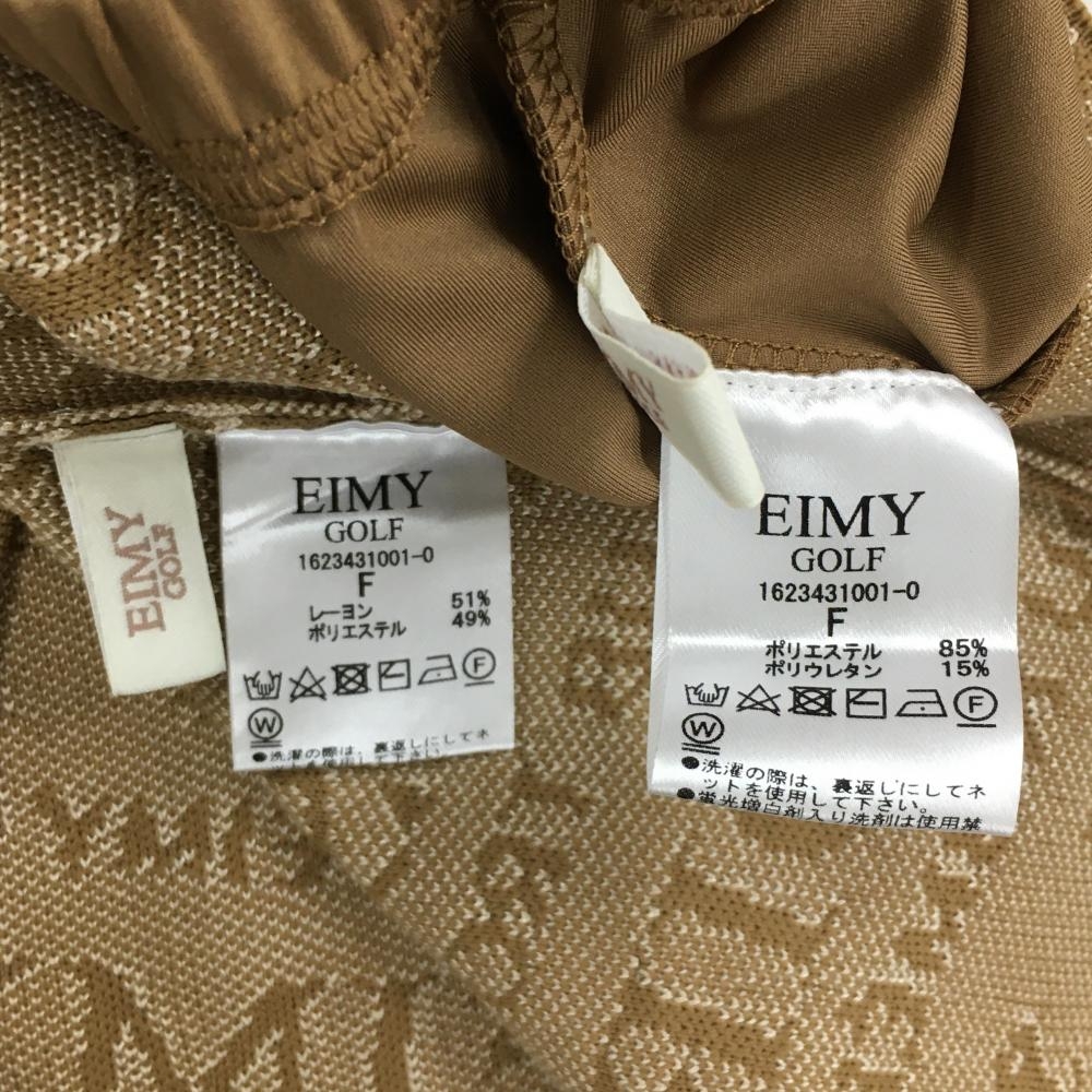 【超美品】エイミーゴルフ ニットワンピース ライトブラウン×ベージュ 英字ロゴ総柄 レディース F ゴルフウェア EIMY GOLF