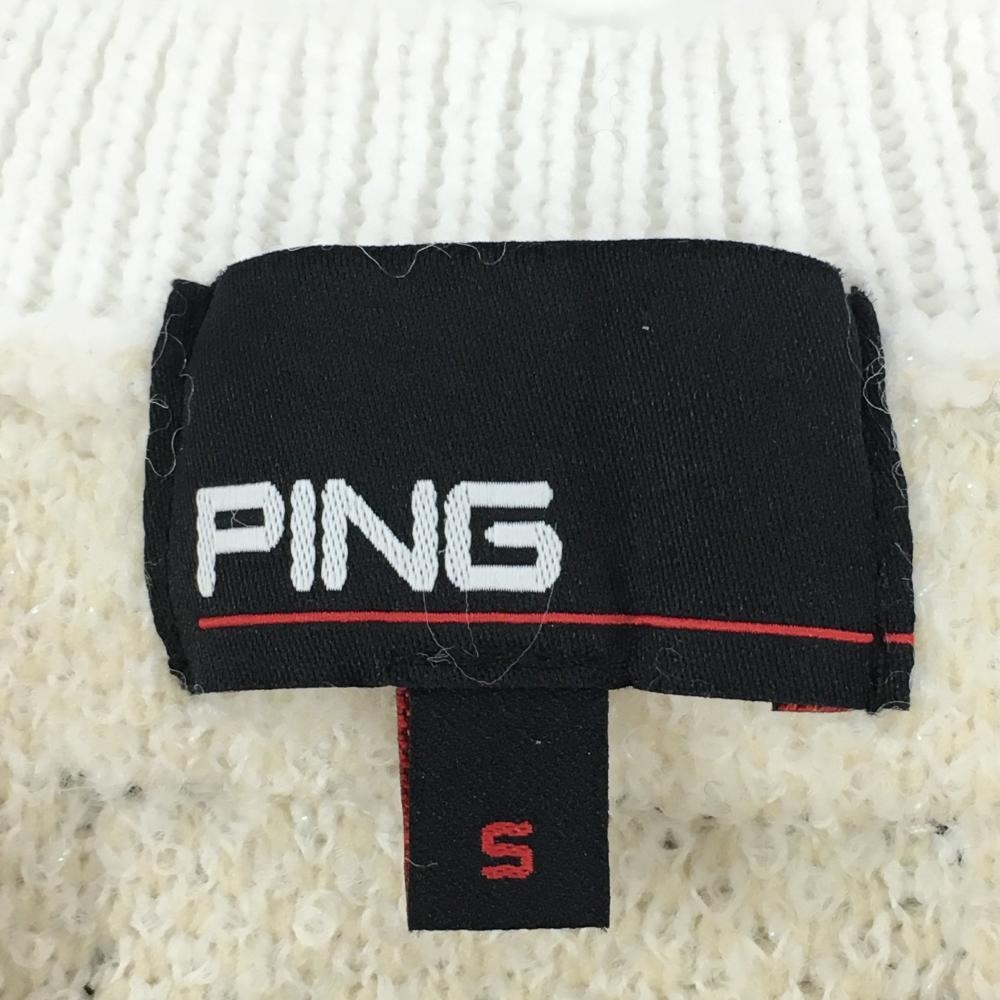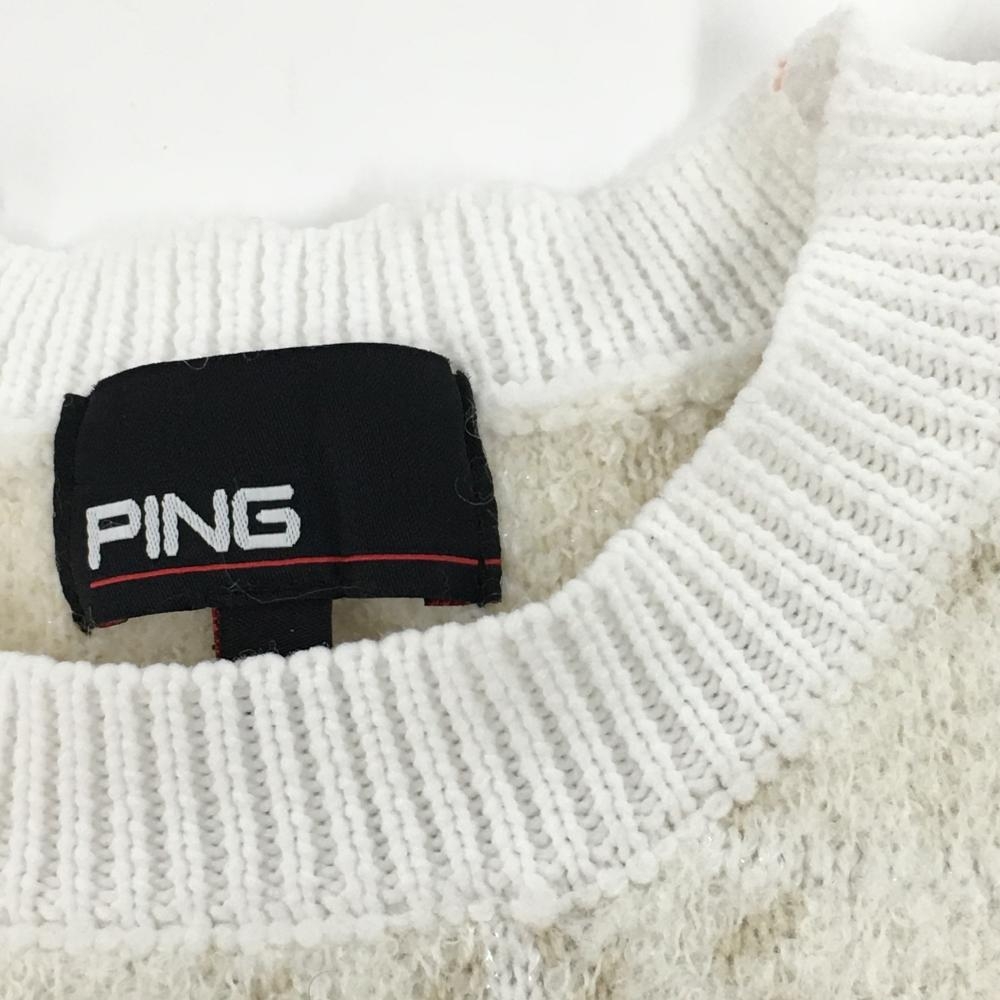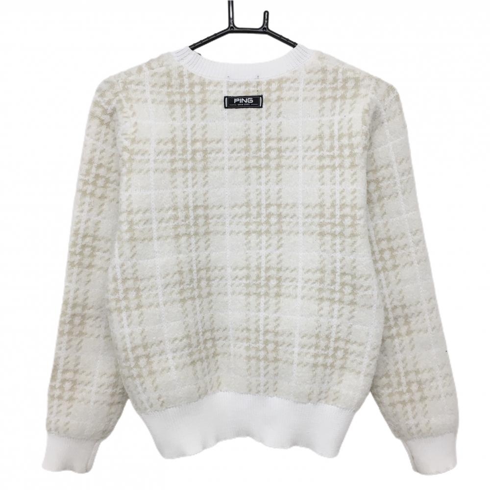 ピン セーター 白×ベージュ系 ブークレチェック 起毛 ウール混 ニット レディース S ゴルフウェア PING