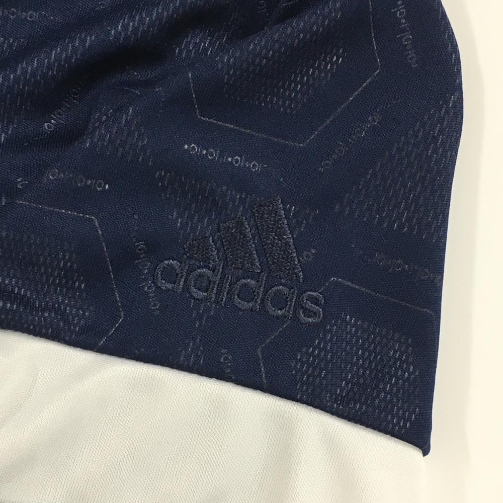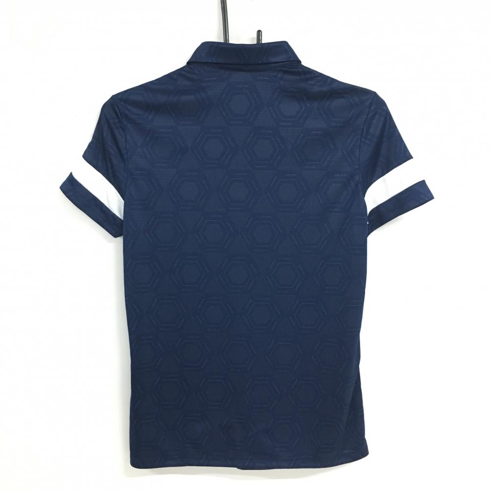 【超美品】アディダス 半袖ポロシャツ ネイビー×白 ヘキサゴン地模様 レディース L ゴルフウェア adidas