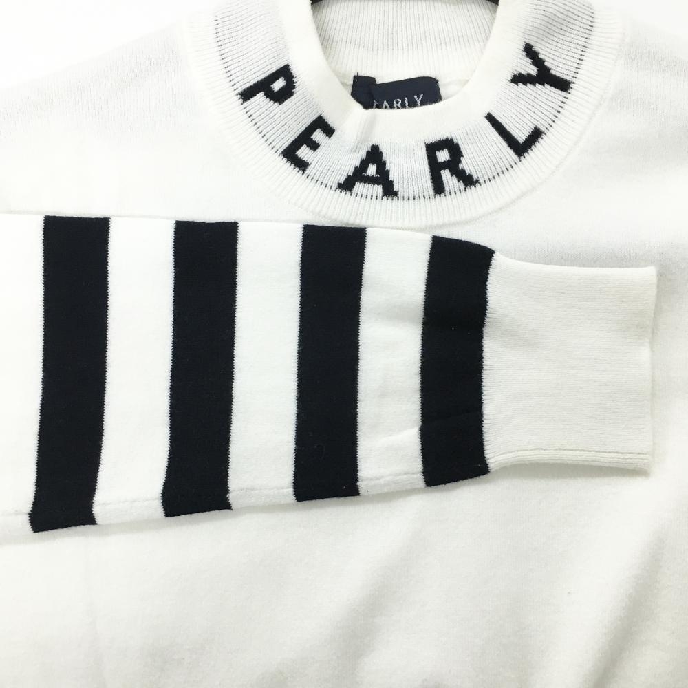 【美品】パーリーゲイツ ハイネックセーター 白×黒 ネックロゴ コットン混 ニット レディース 1(M) ゴルフウェア PEARLY GATES