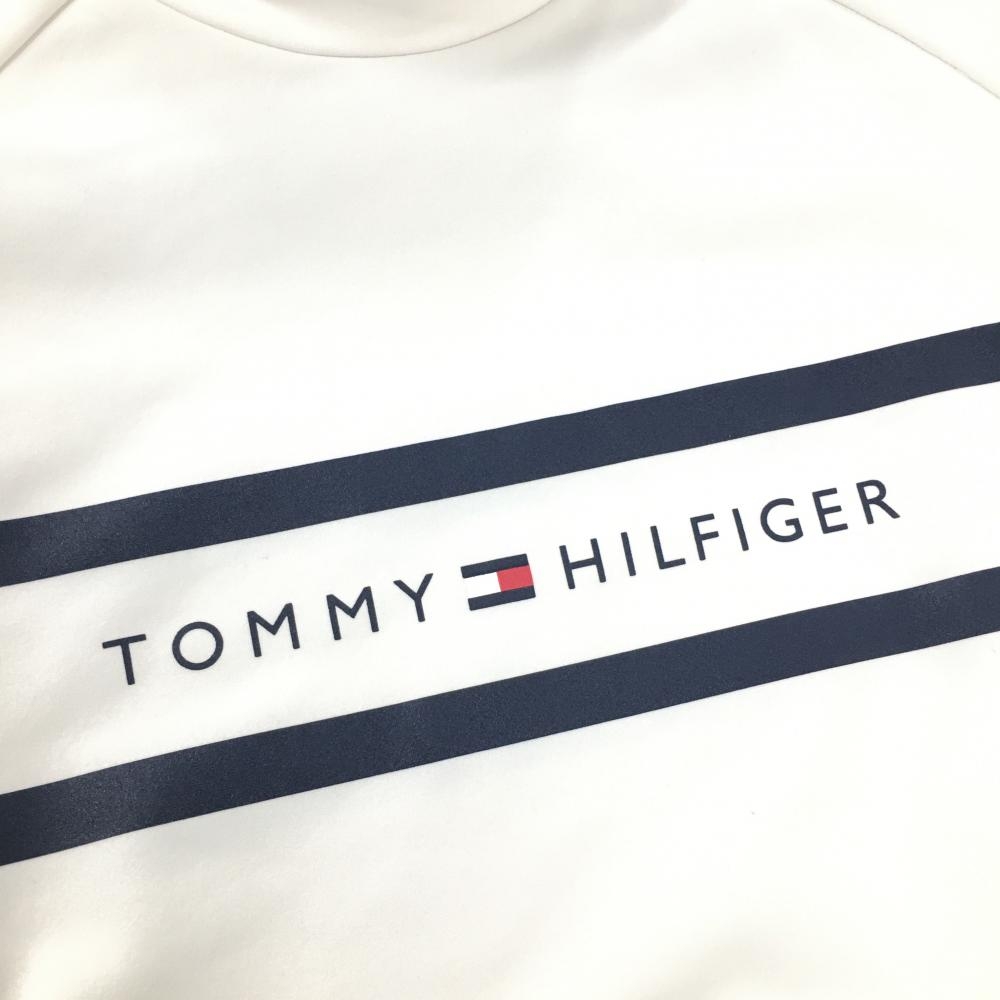 【超美品】トミーヒルフィガー 長袖ハイネックシャツ 白×ネイビー 胸・袖ライン レディース LL ゴルフウェア Tommy Hilfiger Golf