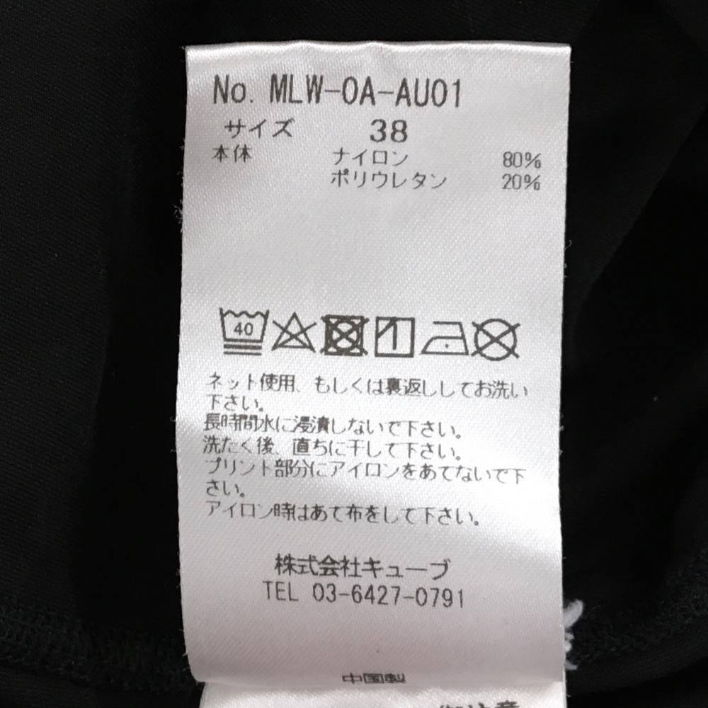 【美品】マークアンドロナ ハイネックインナーシャツ 黒×白 ロゴプリント ストレッチ レディース 38(M) ゴルフウェア MARK&LONA